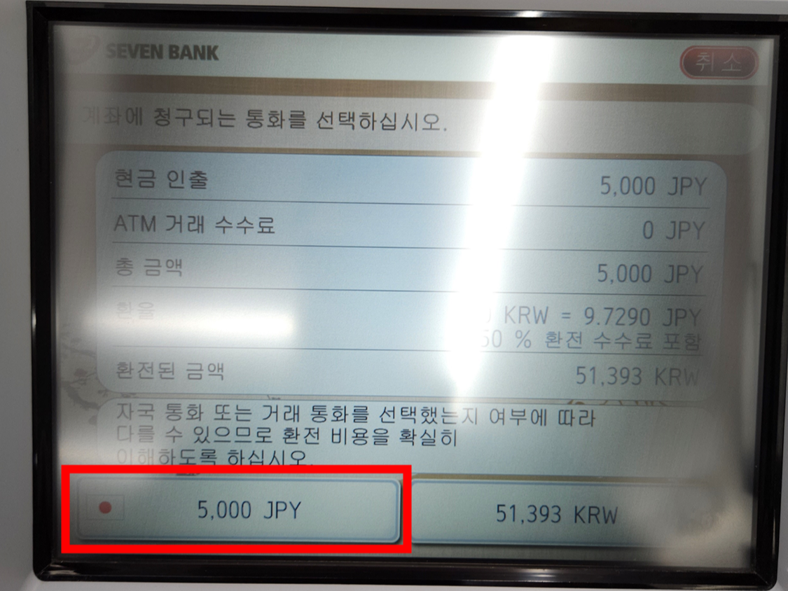 이제 또 한 번 더 헷갈릴 수 있을 만한 곳이다. 우리는 엔화를 현금 인출하는 것이니,