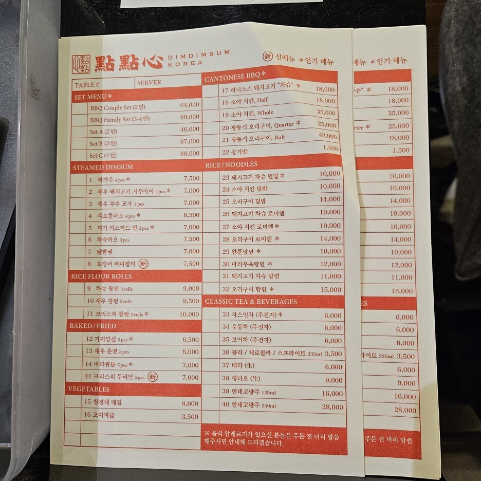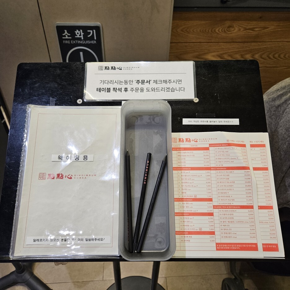 기다리는 동안 준비되어 있는 주문서에 수량을 표시하고 가지고 있다가, 자리 안내를 받고 직원분께 전달하면 바로 주문이 되어 조금이라도 빠르게 먹을 수 있다.