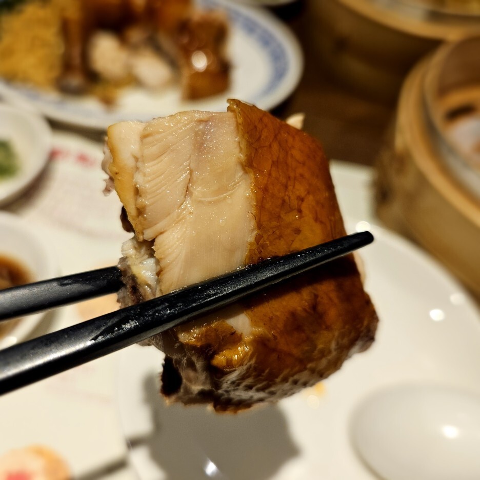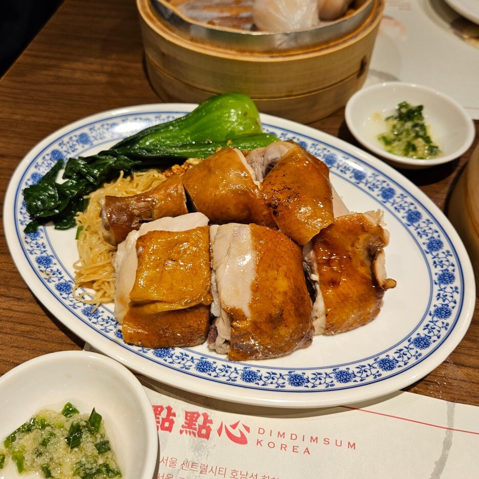 딤딤섬 베스트원 메뉴. 닭은 선택하느냐, 오리를 선택하느냐에 따라서 가격이 달라지는데, 우리는 가급적 조금 더 저렴한 닭고기를 선호한다. 닭고기를 적절한 간으로 오랜시간 동안 간접적으로 익혀서 내는 것이라 예상된다.