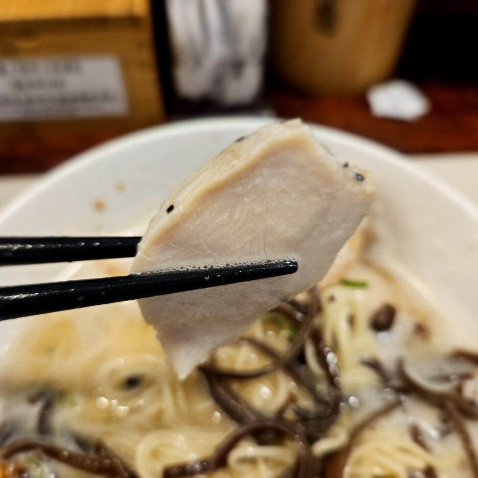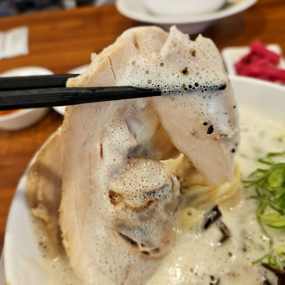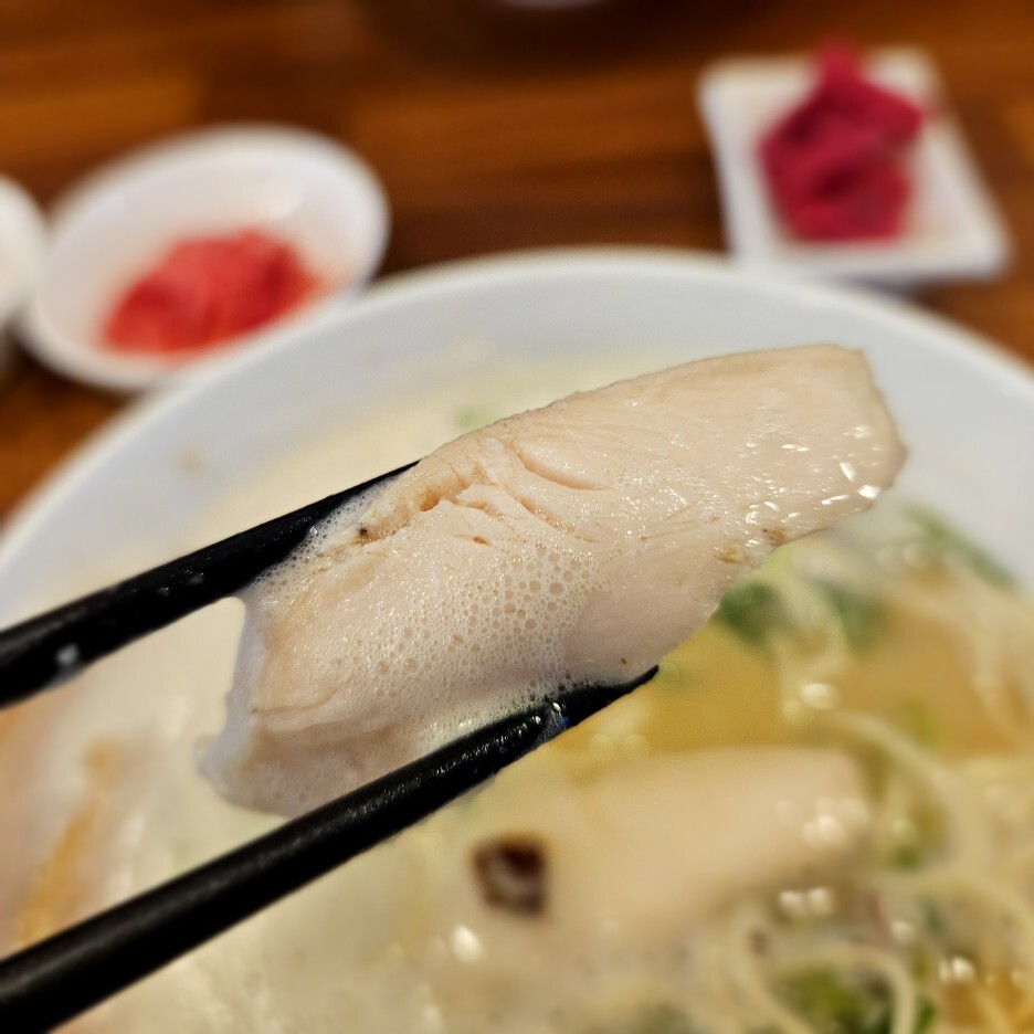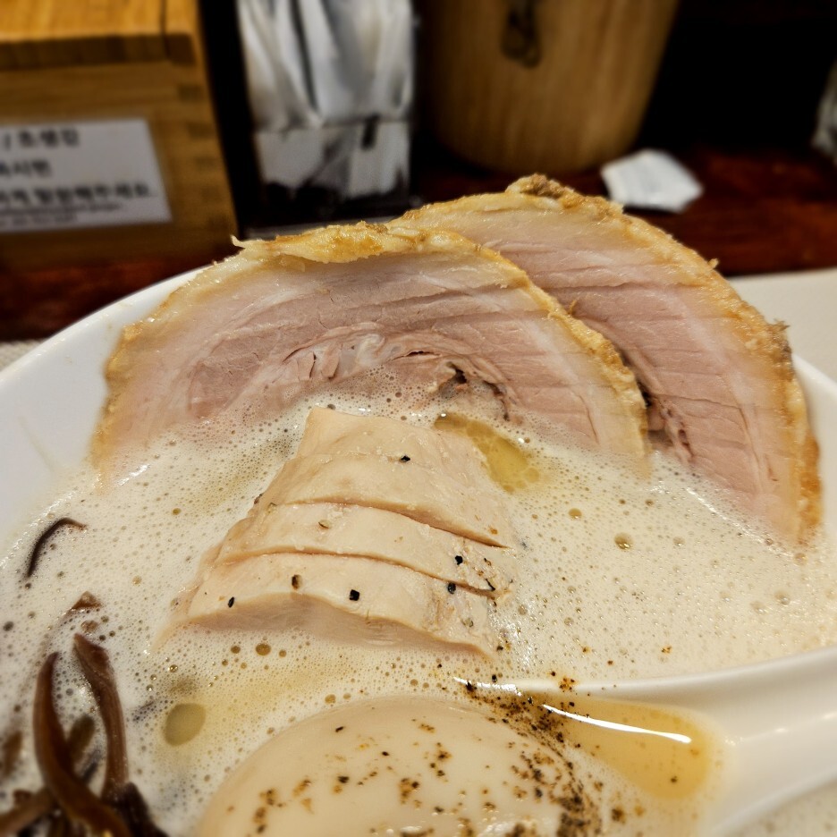 추가하지 않아도 기본으로 들어가 있는 닭 차슈. 한입 먹어보면 엄청 부드럽다. 닭고기의 맛 자체가 많이 느껴지는 그런 차슈는 아니다. 하지만 부드러운 식감으로 만으로도 먹을 가치가 있는 차슈.