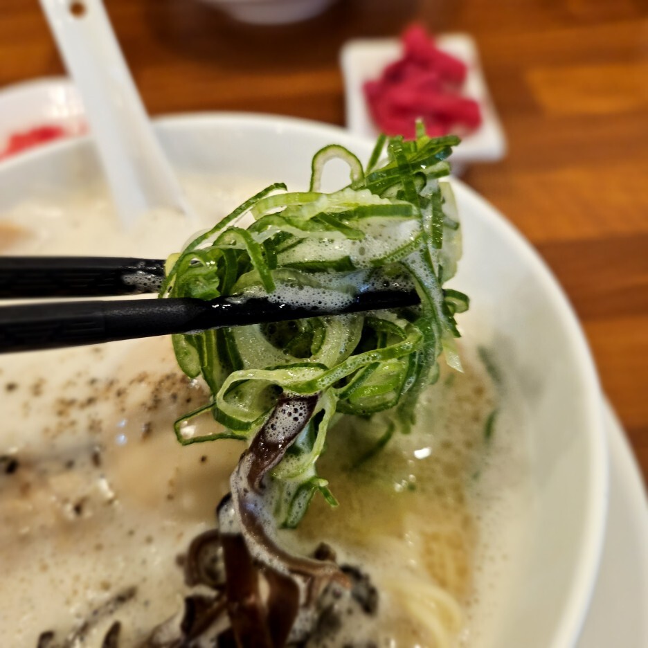 확실히 면 1개의 양이 반개 보다 2배 이상 많아 보인다. 그리고, 훌륭한 점은 면과 함께 파와 닭 차슈도 무료로 추가해 준다는 점. 이래도 되나 싶다.