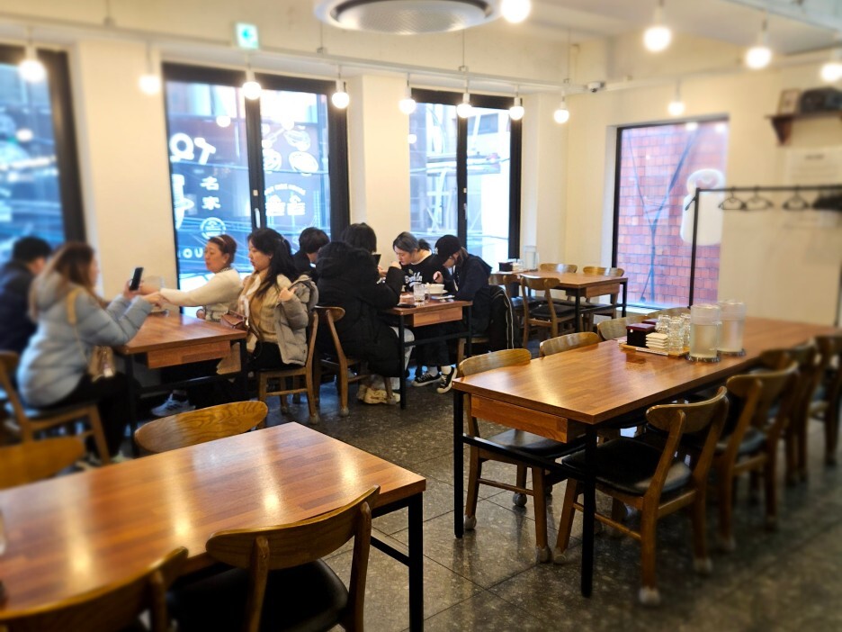 내부는 12개 정도되는 4인석 테이블이 있고, 주방 앞으로 카운터 자리들이 10자리 정도 있다.