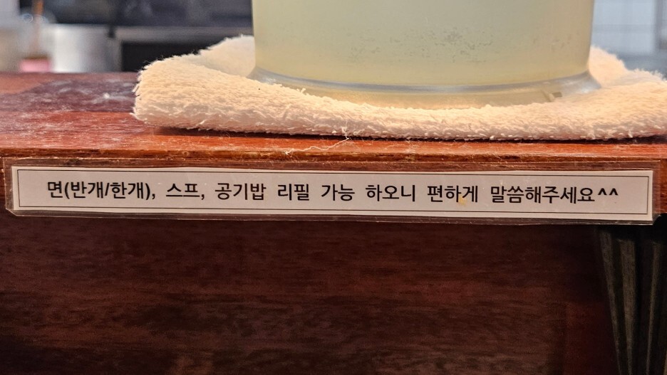 오레노라멘에서는 면과 수프 공기밥이 리필이 가능하다. 다른 곳들은 다 돈을 받는 것인데, 이렇게 공짜로 준다니 너무 감사하다. 밥은 기본으로 시키고, 면도 항상 리필해서 먹는다.