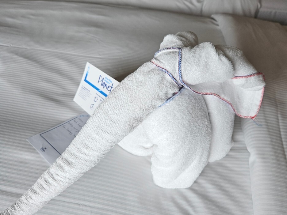 침대에 놓여 있던 코끼리 모양의 타월 아트.