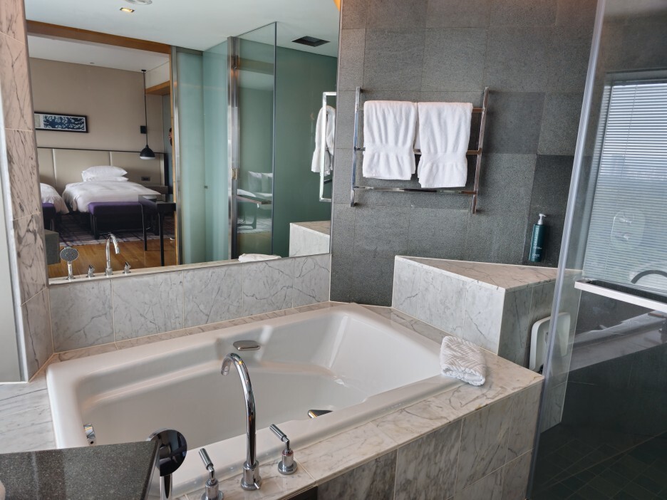 안쪽으로는 꽤 넓은 욕실이 있다. 욕조도 있고, 샤워부스도 따로 있었다. 너무 좋은 듯.
