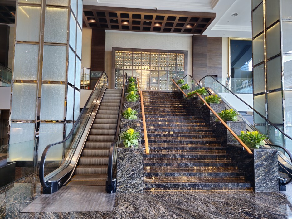즉, 로비 라운지에서 오른쪽으로 가면 화장실이 있는데, 화장실 뒤쪽으로 다른 통로가 있다. 그 통로로 나가서 조금 이동하면 아래와 같은 엘리베이터가 나온다. 이 엘리베이터를 타고 내려가면 공항까지 이동 가능한 KL센트럴 역으로 가는 길로 연결된다. KL센트럴 역에는 NU 쇼핑몰과도 연결되어 있어 한번 구경하러 가는 것도 좋다.