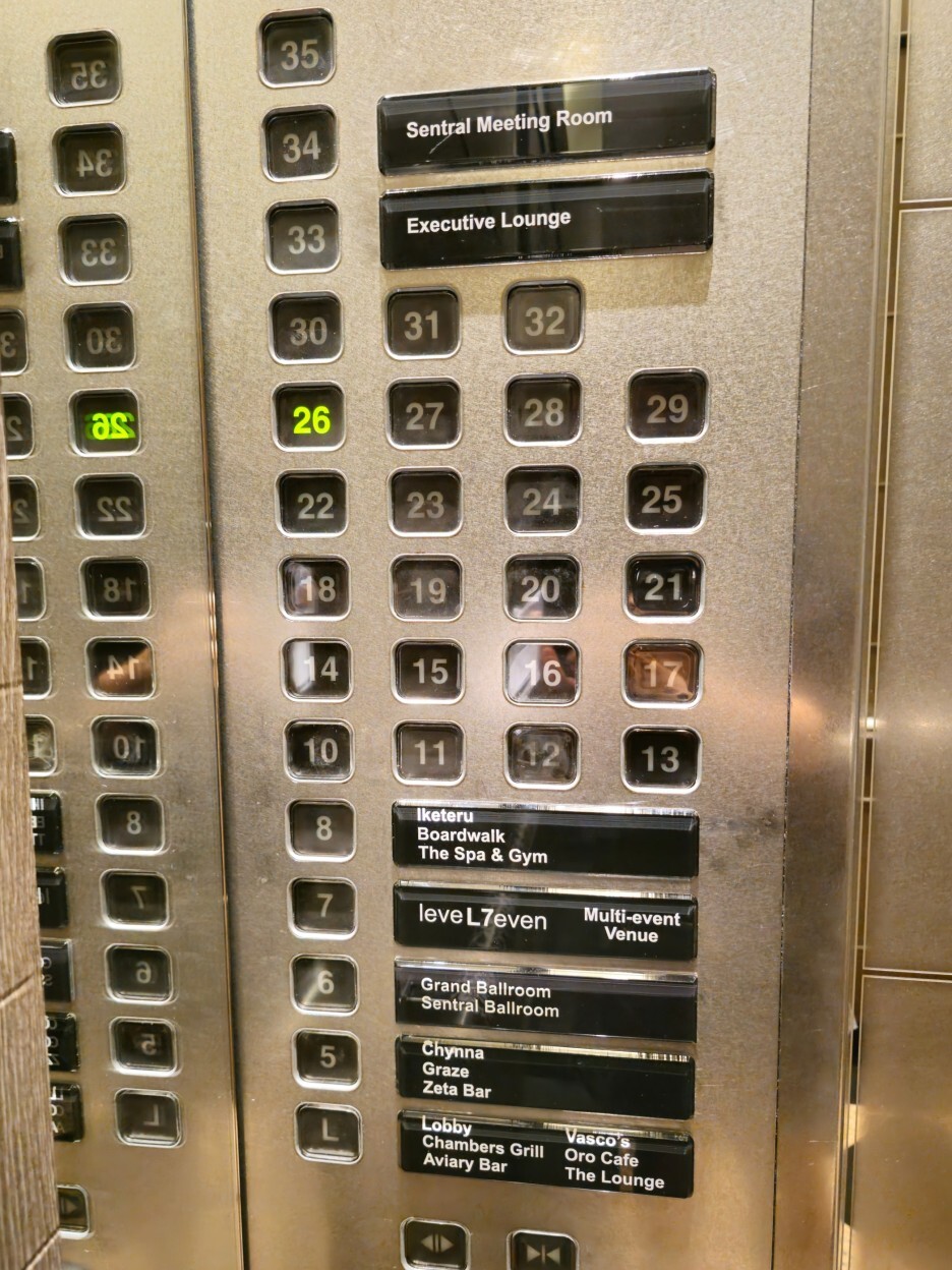 총 35층까지 있는 큰 규모이며, 여러 개의 레스토랑과 이그제큐티브 라운지도 있다. 단, 이 엘리베이터로는 건물 외부로 나갈 수 없다.