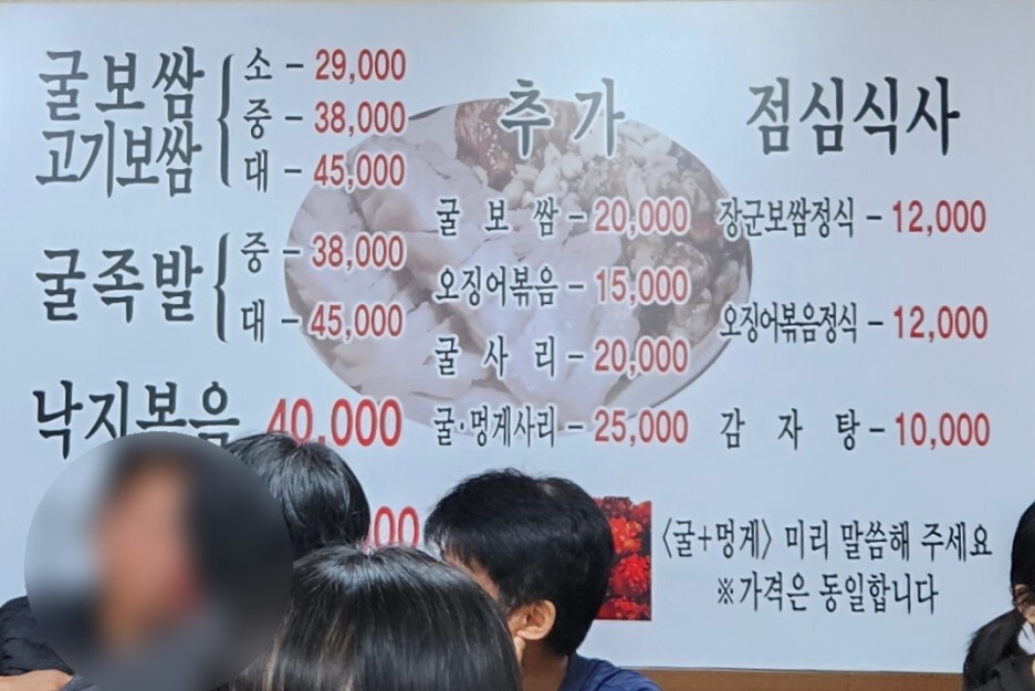 빠르게 굴 보쌈 중자를 주문한다. 아래 메뉴 사진이 최선이었다.