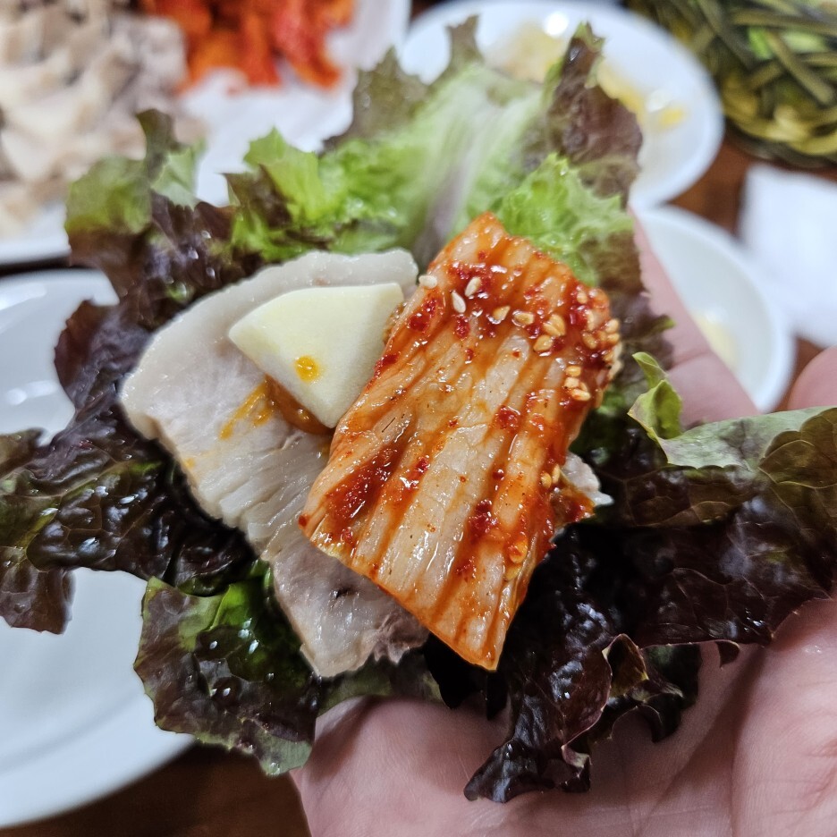 삼겹과 살코기가 적절히 섞인 고기와 보쌈김치가 생각보다 넉넉하게 나왔다.