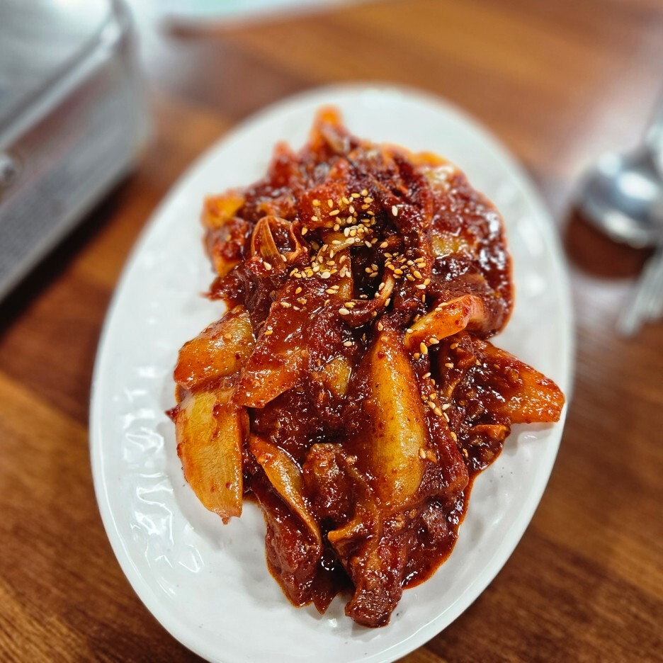 오징어볶음은 어느 리뷰에 적혀 있던 것과 같이, 양파 볶음의 느낌. 하지만, 양념 맛은 불 향도 입혀져 있는 달콤 매콤한 맛이 곁들여 먹기에 좋았다. 양파를 워낙 좋아하여 양파 볶음이라고 해도 훌륭하다.