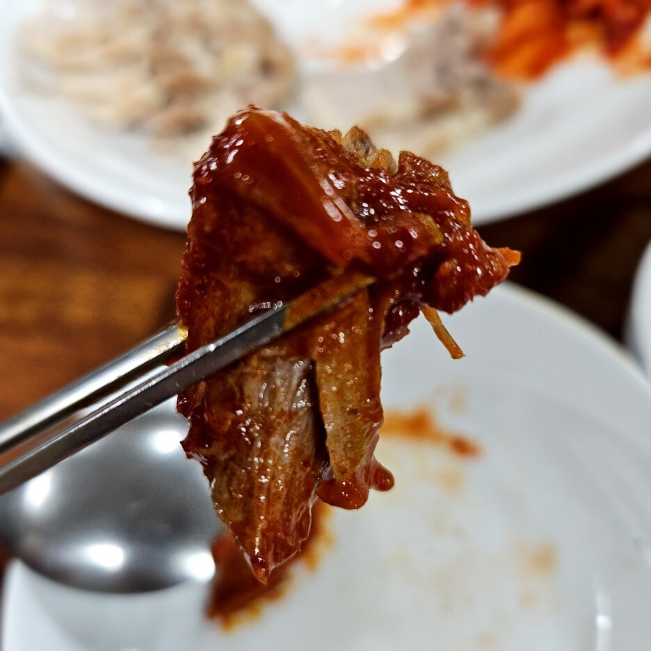 이번에는 조금 자극적인 맛으로 버전업한다. 양파볶음을 넣어서 한입 하니, 불향 가득한 볶음 양념이 고기의 질감을 잊게 만들어주며 맛을 끌어올려 준다.