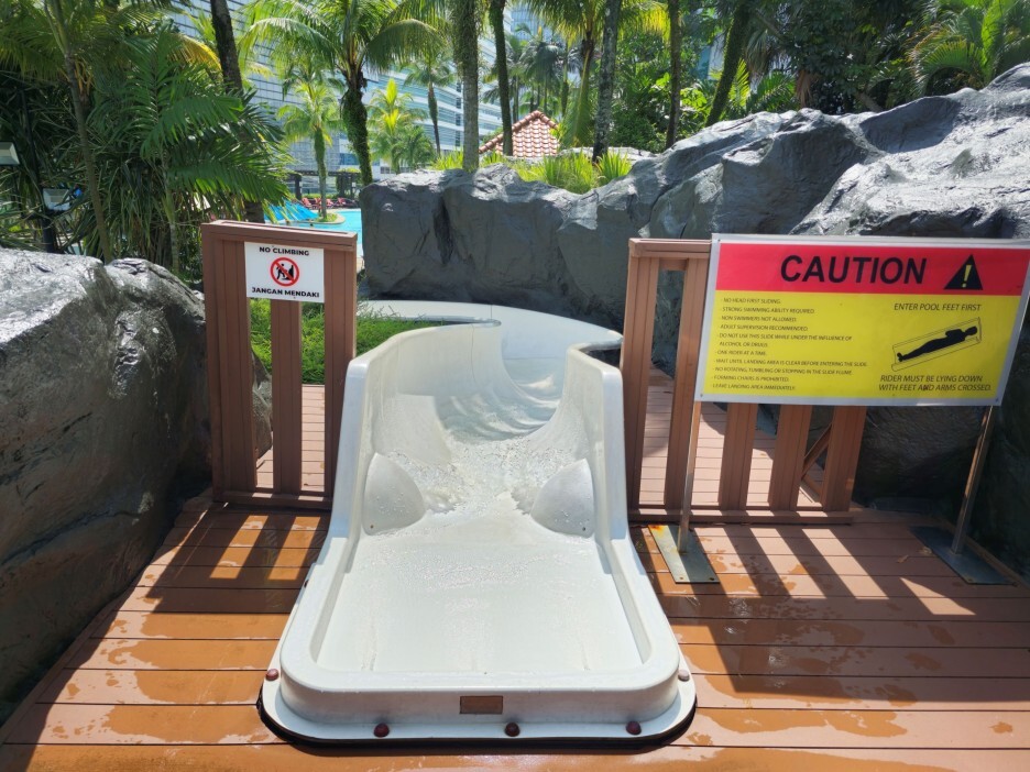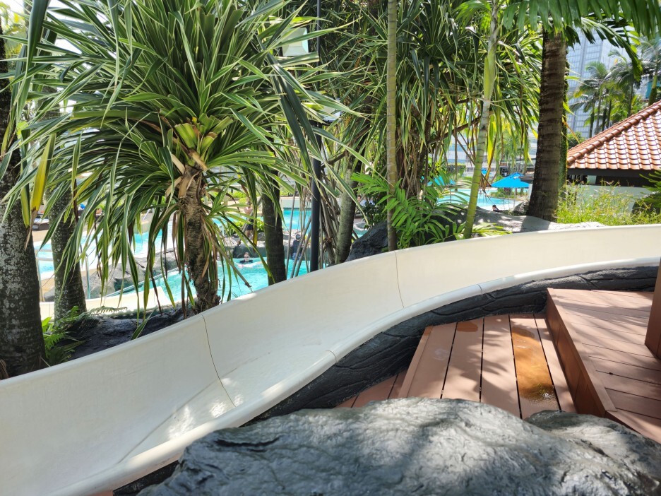 수영장에는 작지만 슬라이드도 있다. 짧은 길이이긴 하지만 꽤 빠르게 내려올 수 있어, 어린이들이 재미있게 타는 모습이었다.
