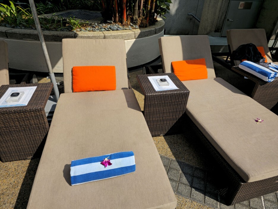 기본적으로 썬 배드에는 타월이 준비되어 있다. 쿠션들도 아주 깨끗하게 잘 관리되어 있는 모습이었다.