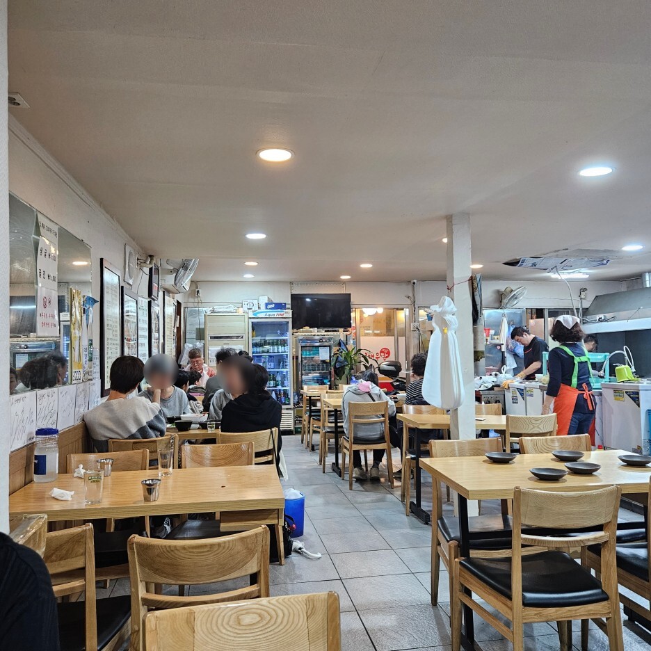 깔끔하고 정돈된 내부 모습. 그리고 오픈형 주방. 시장에 위치한 식당 치고는 상당히 괜찮다.