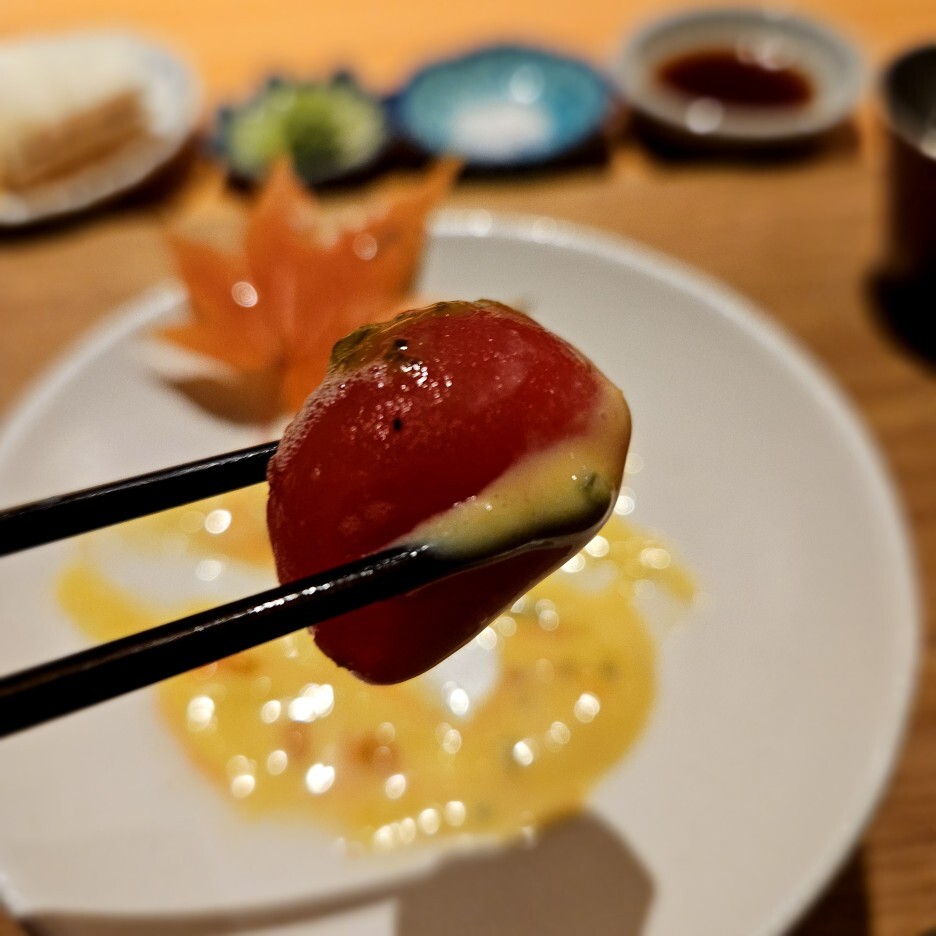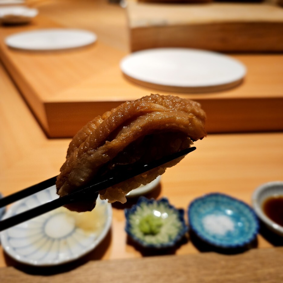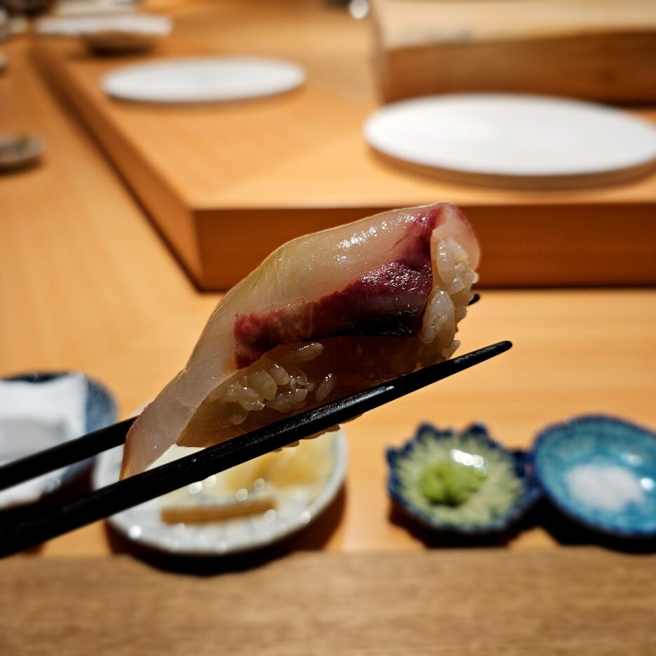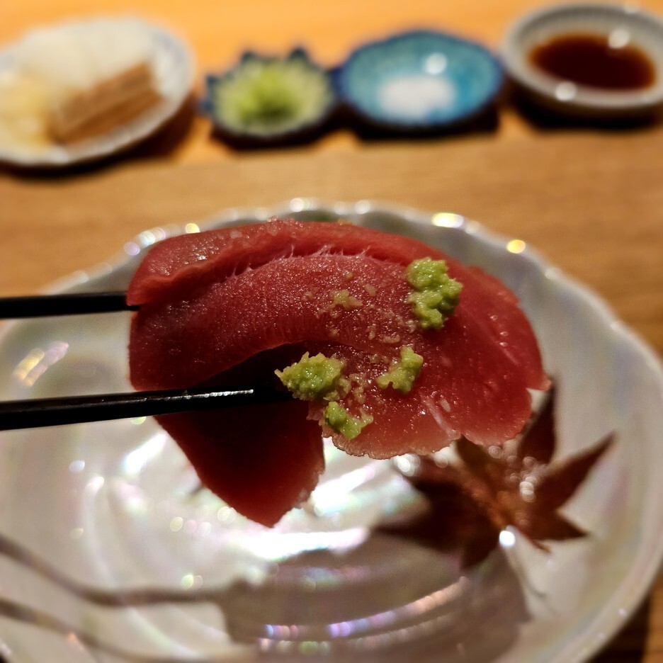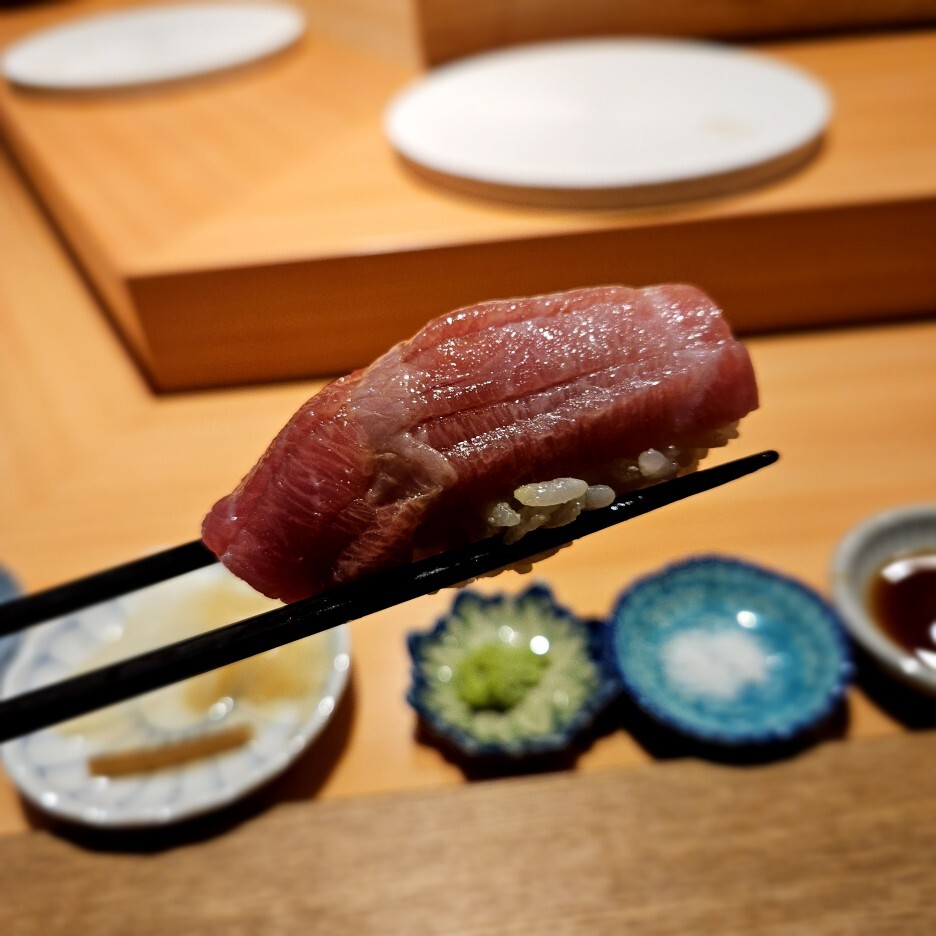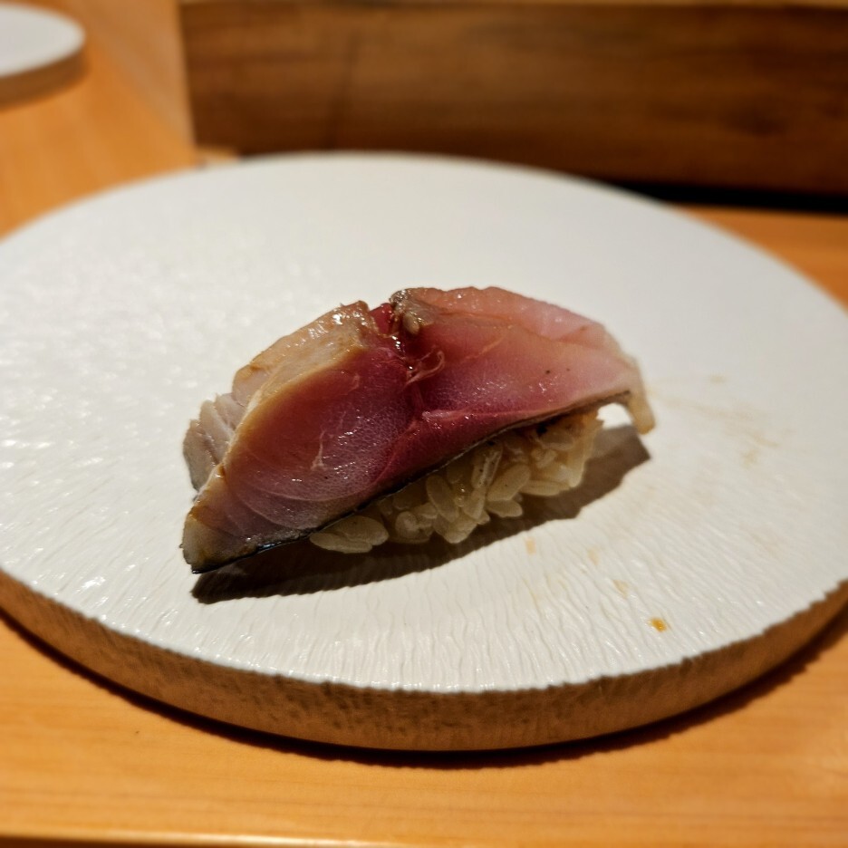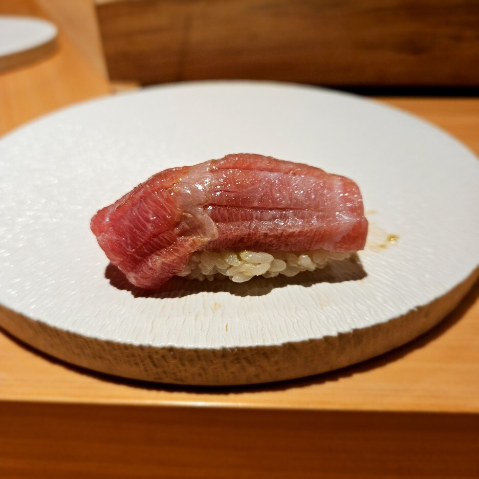 참치 속살 중 가장 안쪽의 부위를 2주 숙성하셨다고 자랑스럽게 말씀해 주셨다. 좋은 부위라 그만큼 훌륭한 맛. 특히 신맛과 간장의 맛이 잘 어울리는 훌륭한 맛.