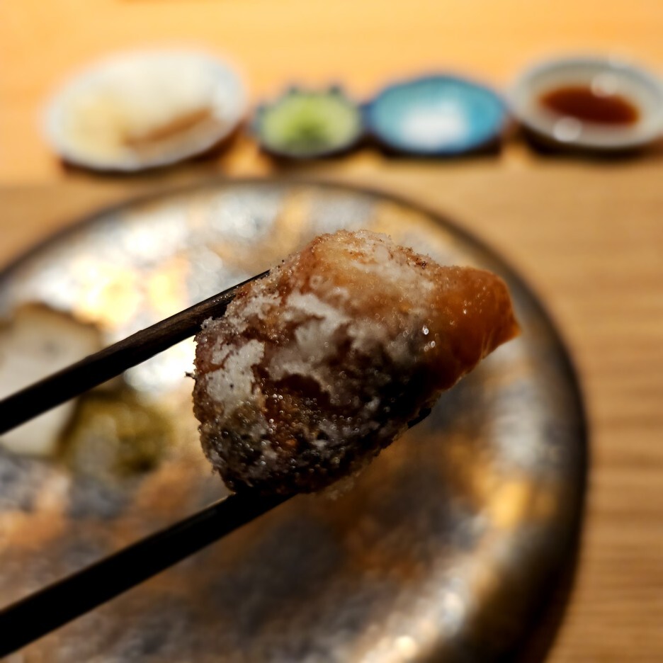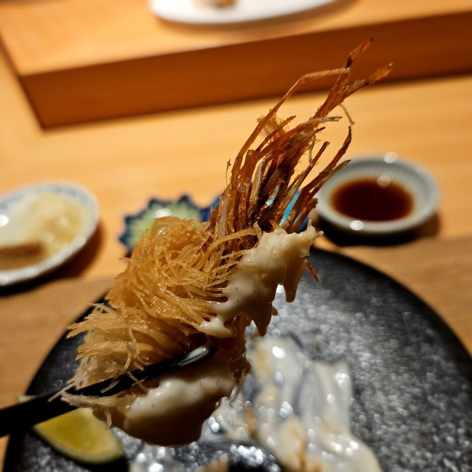 야쿠미로 들어가 있는 대파 흰 부분 튀김은 은은하게 올라오는 맛이 참돔과 잘 어울렸다. 아주 맛있던 한 점.