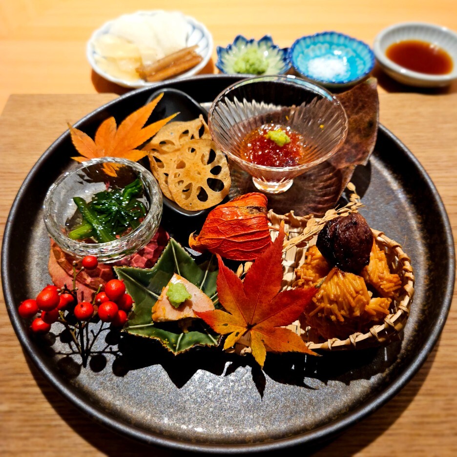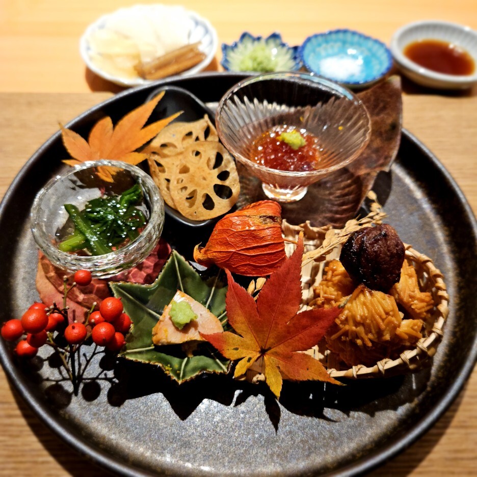 무려 7가지의 요리가 제공된 츠마미는 하나하나 맛있었다. 늦가을을 맞아 준비해 주신 다양하고도 멋진 모양새가 눈과 입을 모두 즐겁게 해주는 별미였다.