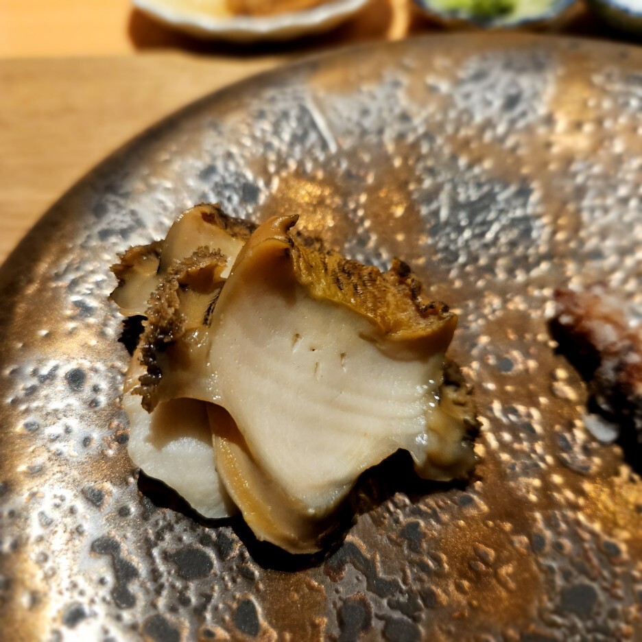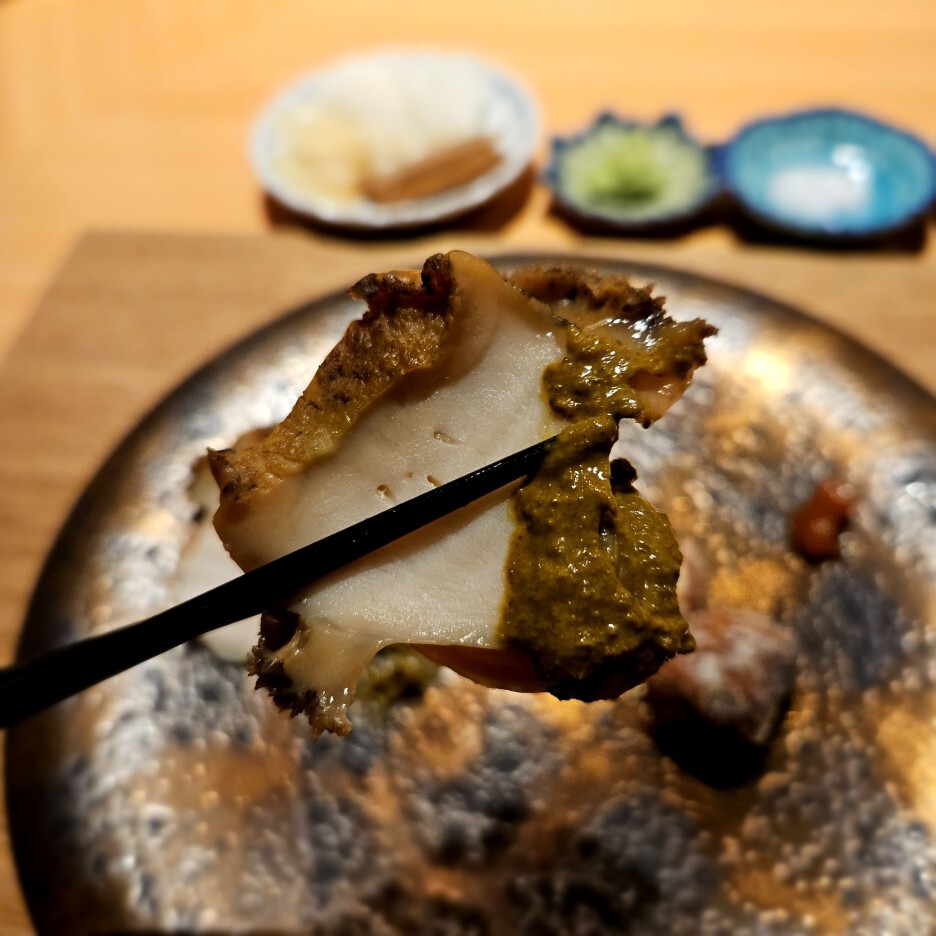 4시간 찐 전복과, 2시간 삶아 튀긴 문어. 전복은 게우 소스와 함께 나왔고, 문어 튀김은 상큼한 우메보시 같은 맛이 나는 소스를 함께 주셨다.