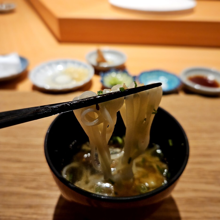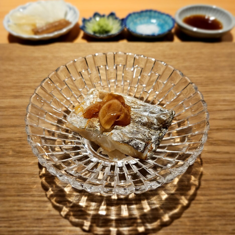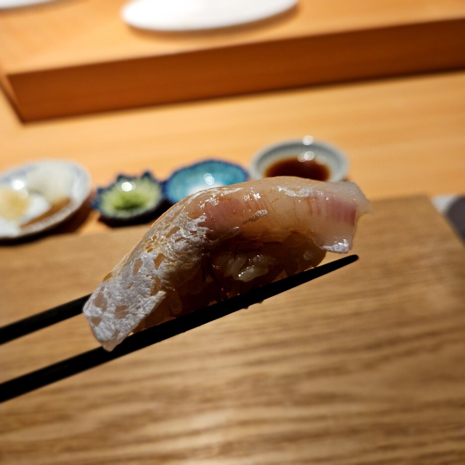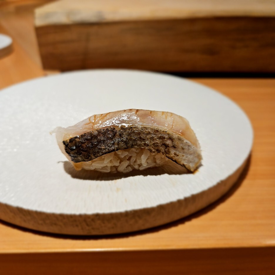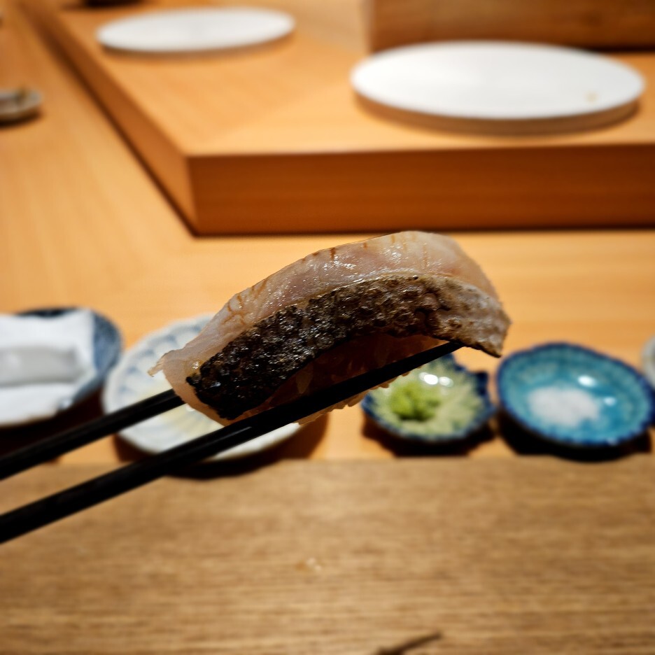 얇은 시로 콘부(하얀 다시마)가 올라가 있어 감칠맛을 극대로 끌어올려준다. 지난번 런치에서 먹었던 전어보다는 이제 맛이 조금 떨어지는 듯하다. 아무래도 겨울철로 접어드는 시기라 그런 듯. 그래도 나의 전어에 대한 관념을 완전히 바꾼 아리가의 전어는 여전히 맛있었다.