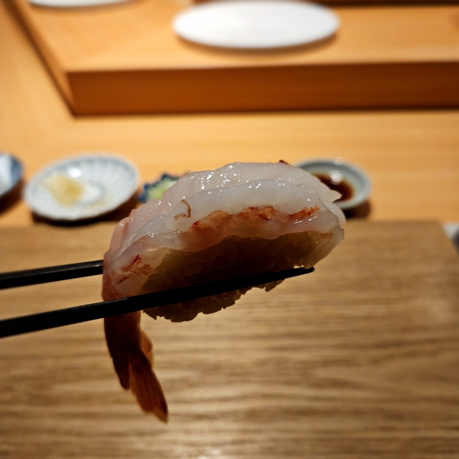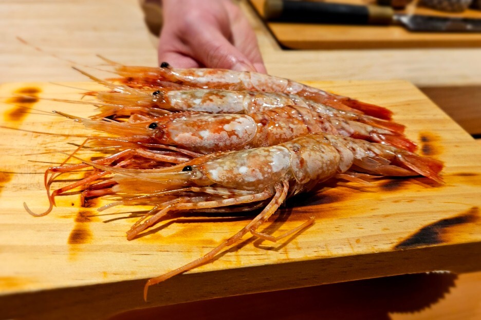 다음에 나올 스시의 네타인 도화새우를 보여주셨다. 크기가 상당히 크다. 역시 비싼 녀석이라 생긴 것도 멋지다.