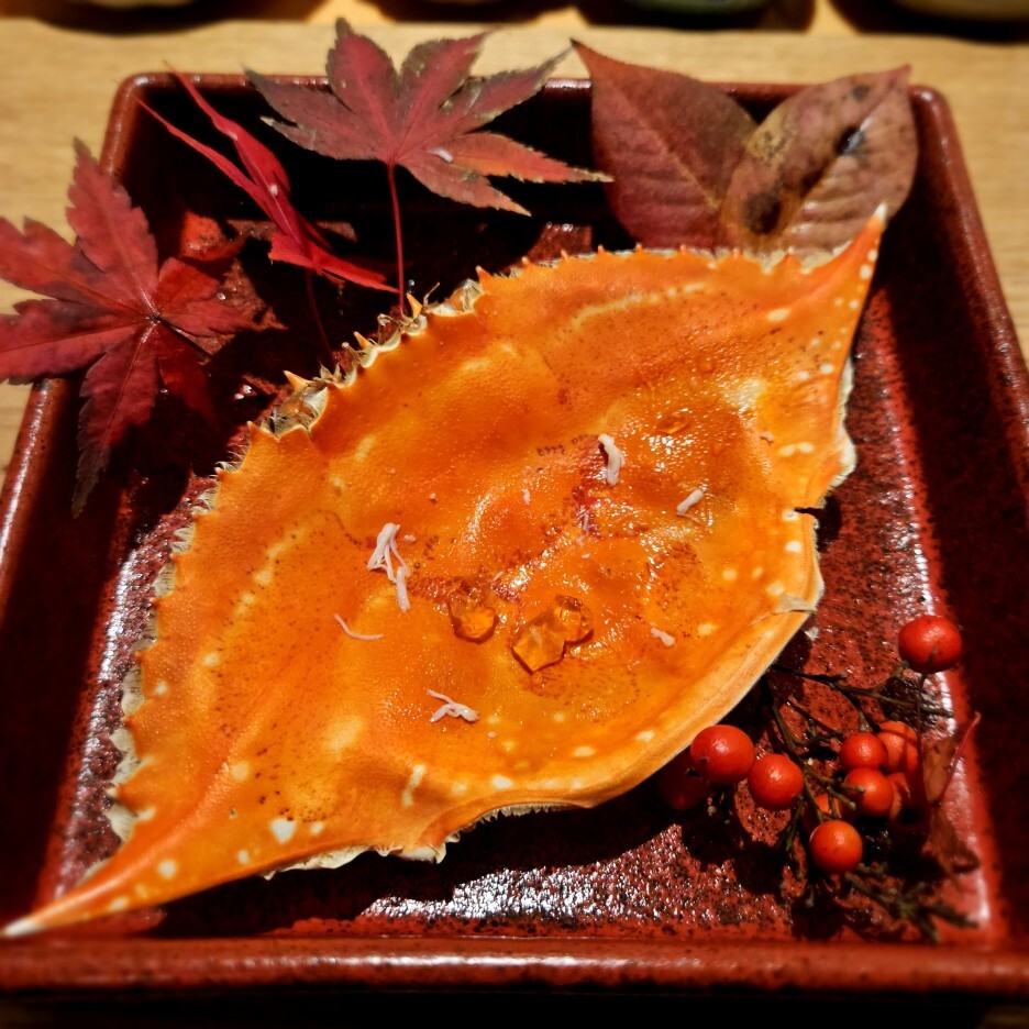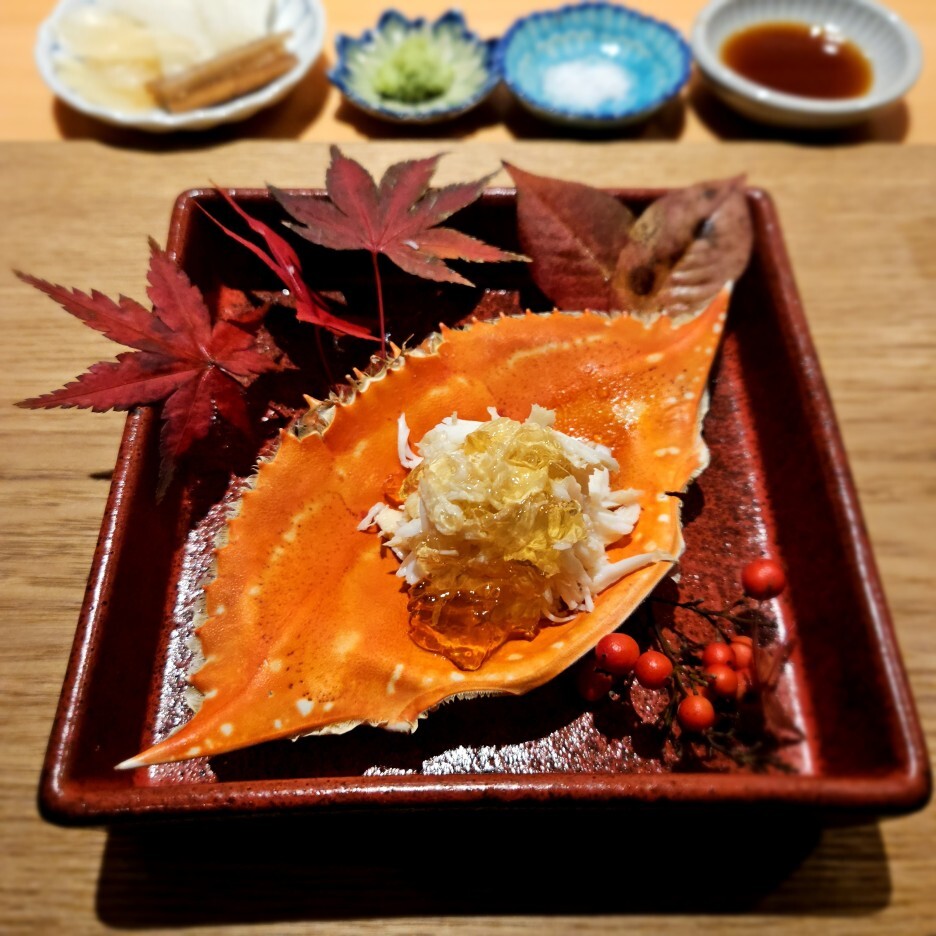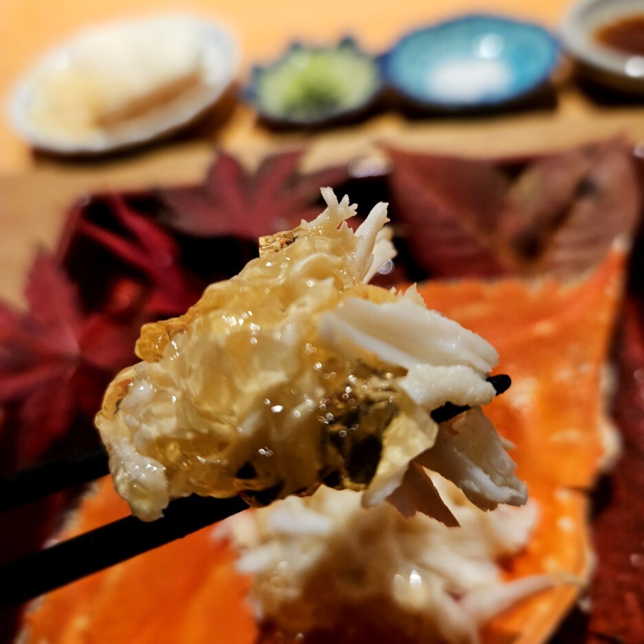제철인 꽃게 살은 당연히 맛있다. 가츠오부시를 젤리화 한 소스가 감칠맛을 더욱 살려준다.