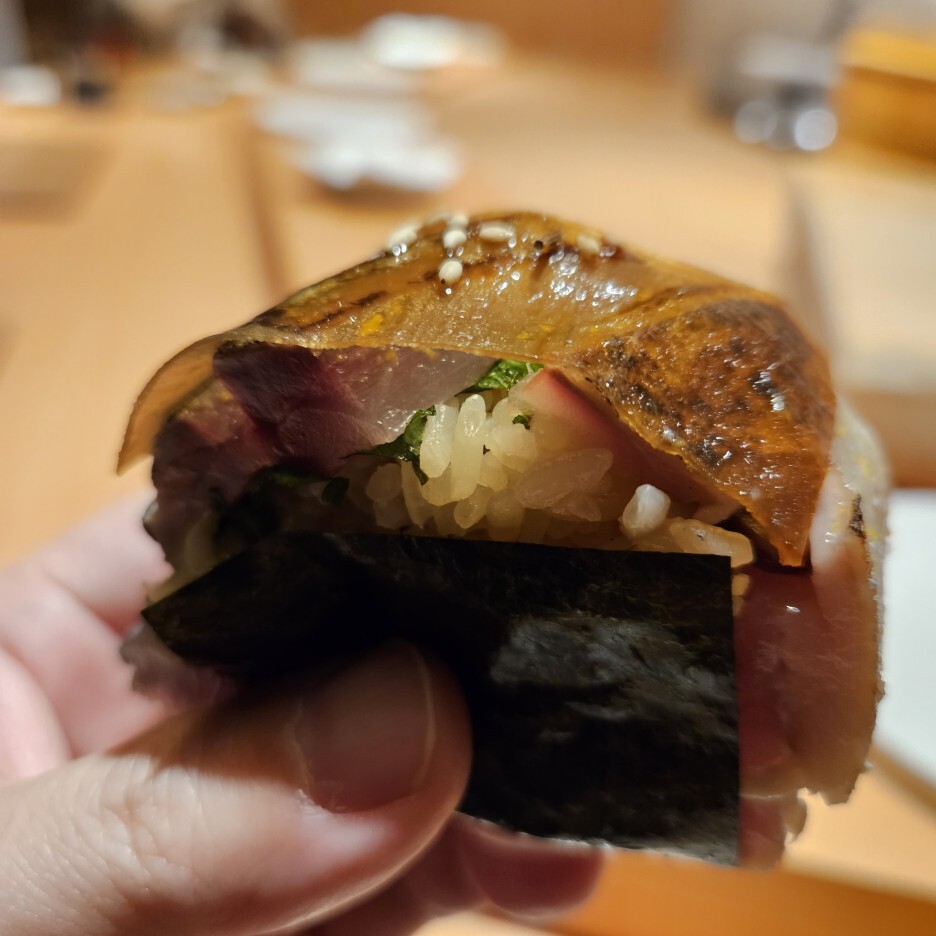 추가 서비스로 주신 고등어 스시. 이제 고등어가 맛있어지는 시기라 고소함과 기름짐이 좋았다.