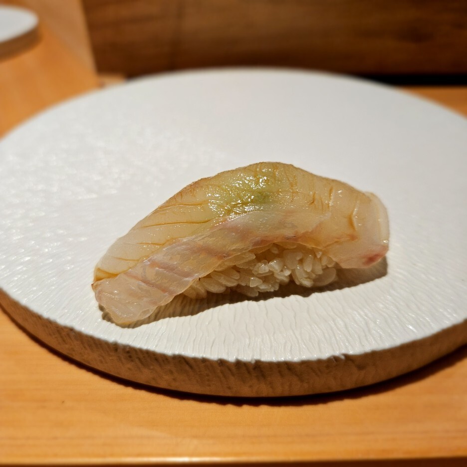아카미, 3일 숙성의 광어, 6일 숙성의 방어. 아카미의 산미가 좋아 맛있었다. 시소와 무도 함께 나와 마지막에 입가심을 하기에 좋았다.
