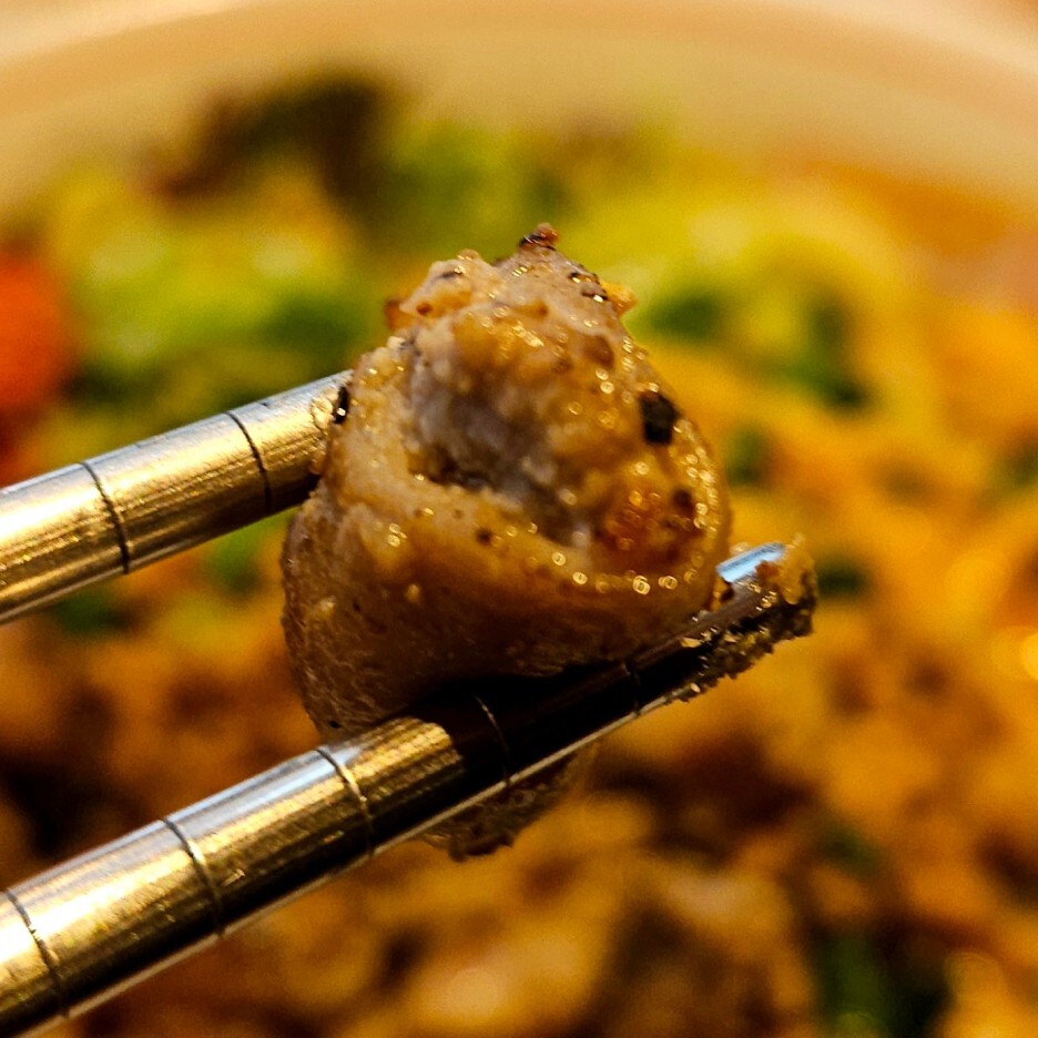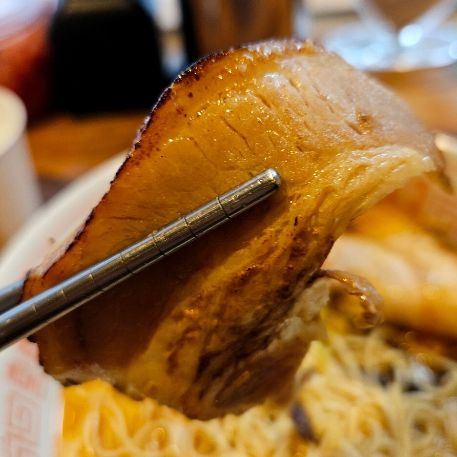 그리고 차슈의 모습. 이날은 차슈 추가가 되지 않아서, 기본 차슈 두 장이 들어있었다.