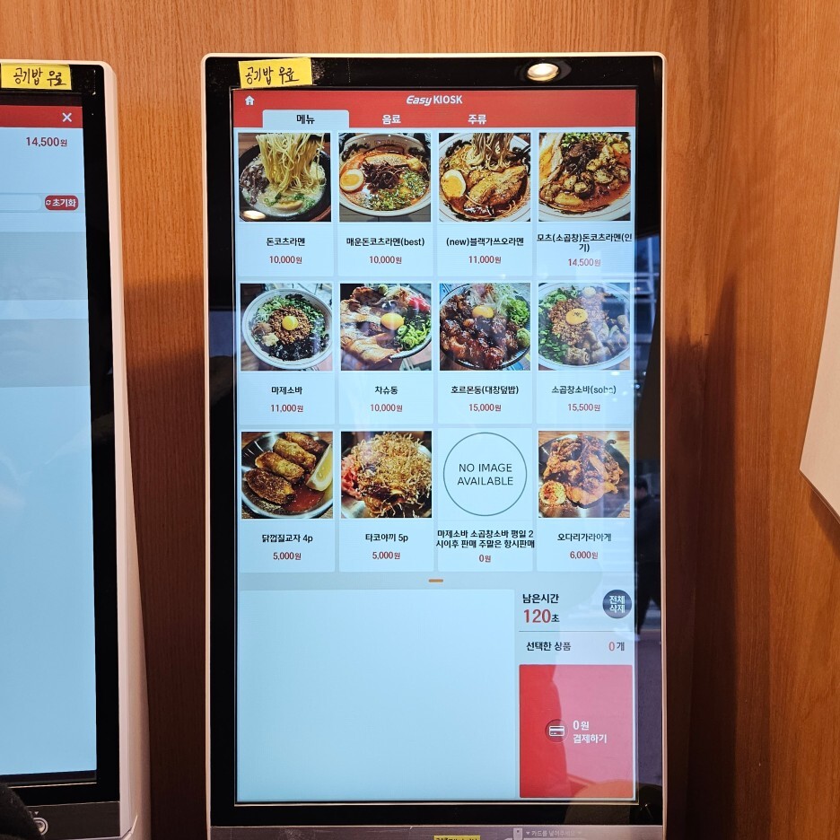 우리는 토요일 오후 12시10분쯤 입장을 했는데, 딱 마침 모든 자리가 차있던 상황. 잠시 기다리면서 주문을 하였다. 주문은 키오스크로. 좋았던 점은 키오스크가 2대라서 조금 빨리 주문이 가능하다는 점.