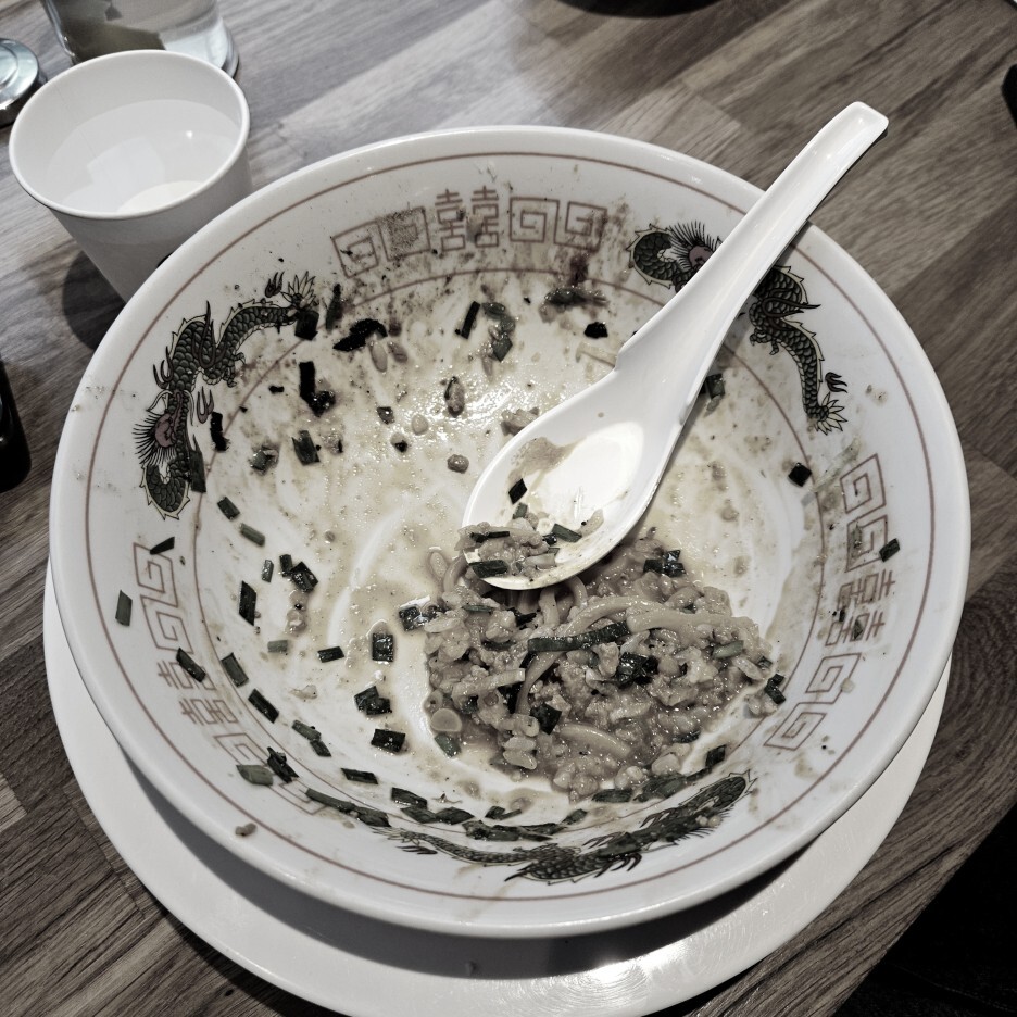 라멘과 마제소바 모두 정리되었다. 마제소바는 매워서 조금 남기게 되었다.