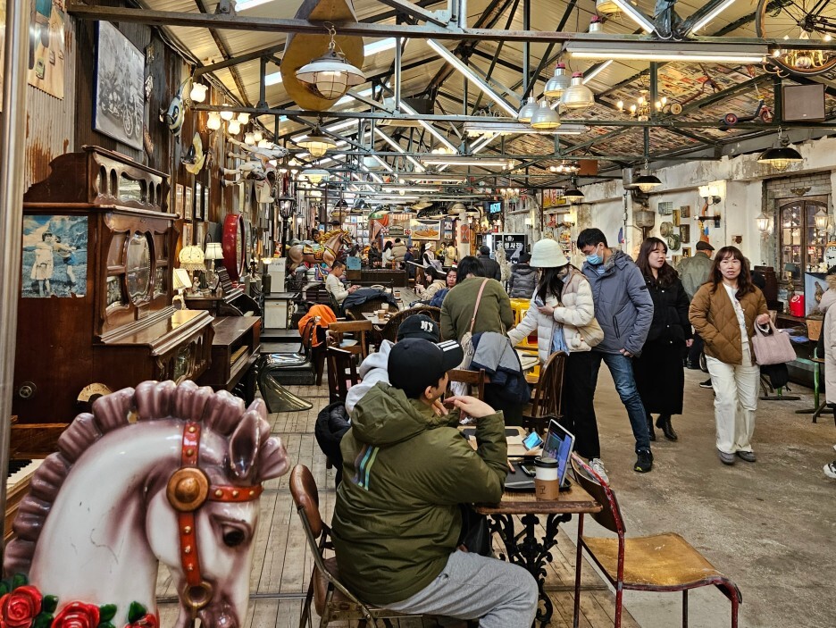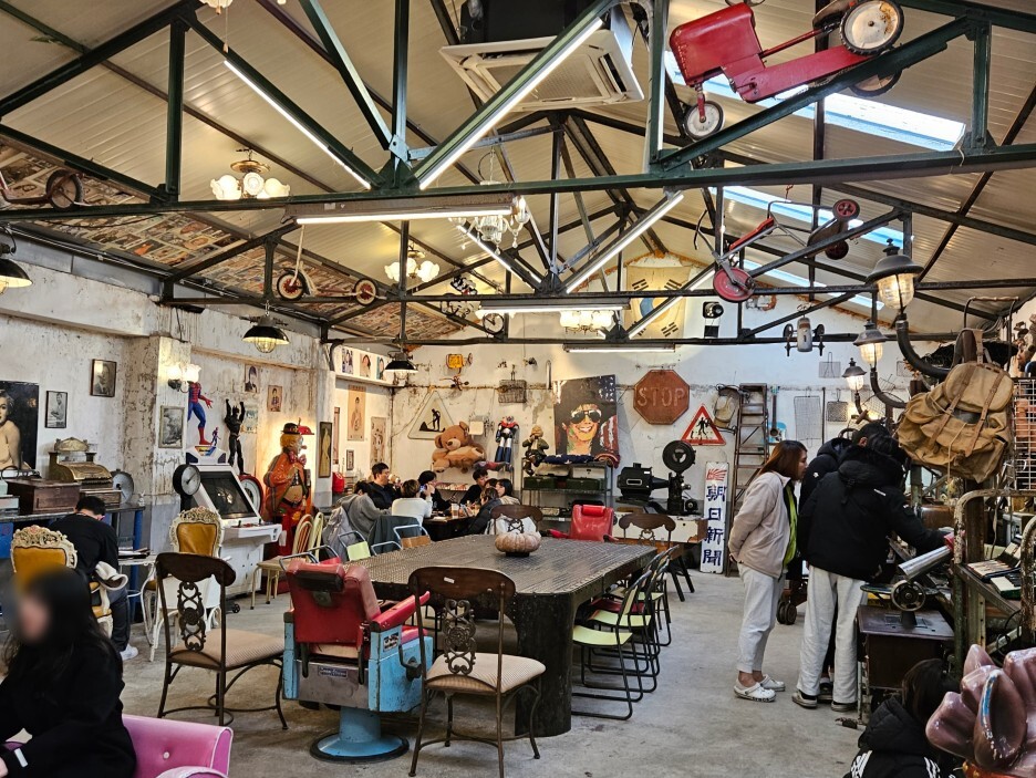 아무래도 방직공장이라는 컨셉을 살리다 보니, 이러한 구조가 되지 않았을까 싶었는데, 뭐 나에겐 그리 좋아 보이진 않는다. 하지만, 넓은 공간이 주는 쾌감은 좋았다. 또한 여기저기 배치되어 있는 다양한 소품들은 구경하는 재미가 있었다.