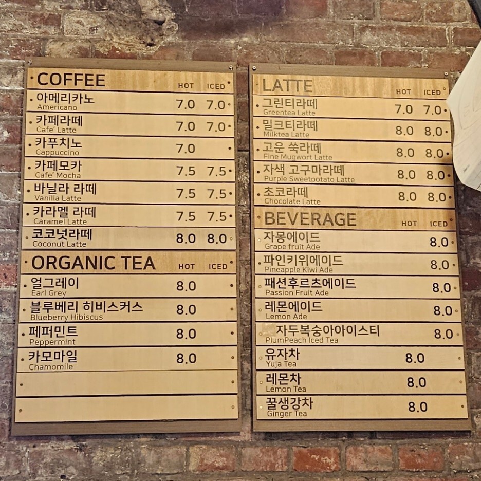 판매하는 음료는 아래 메뉴를 확인해 주시기 바란다. 이외 다양한 주스류도 판매를 하고 있었다.