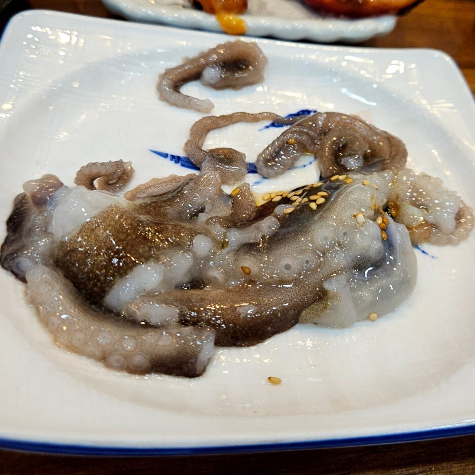 아마도 골뱅이라 생각되는 해산물. 속이 아주 통통한 게 부드럽게 씹혀 맛있다.