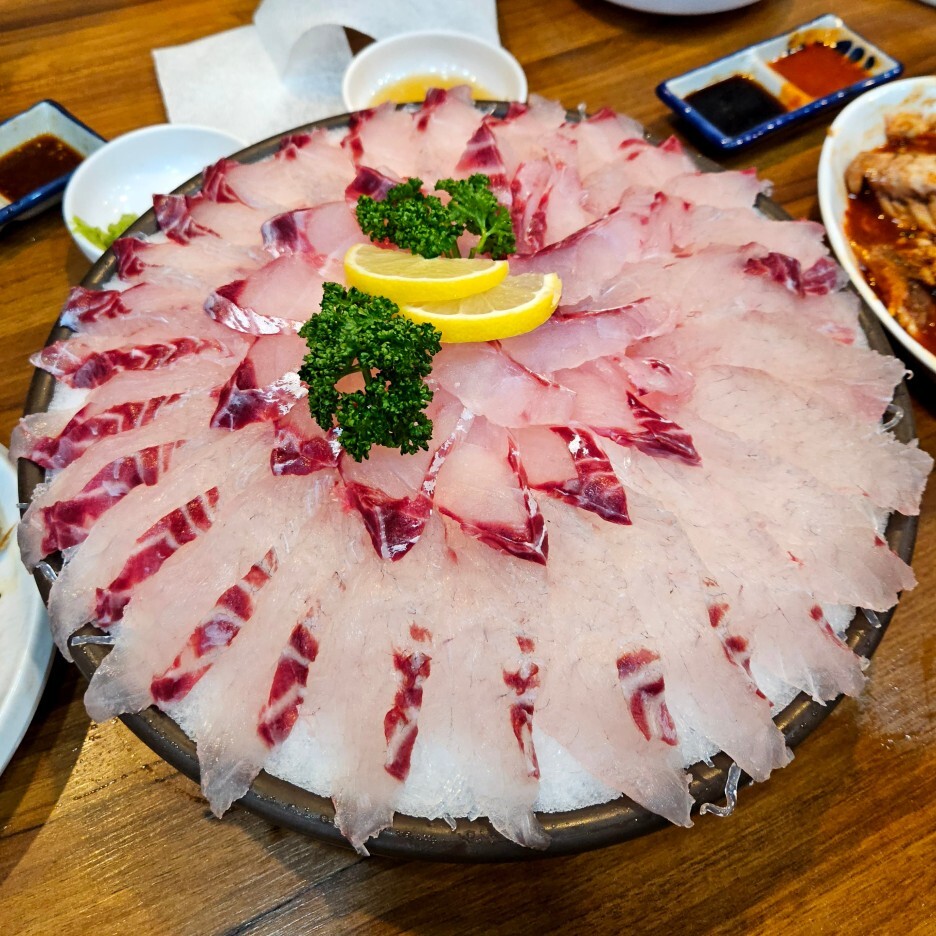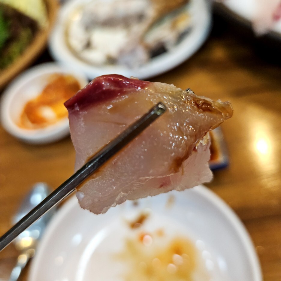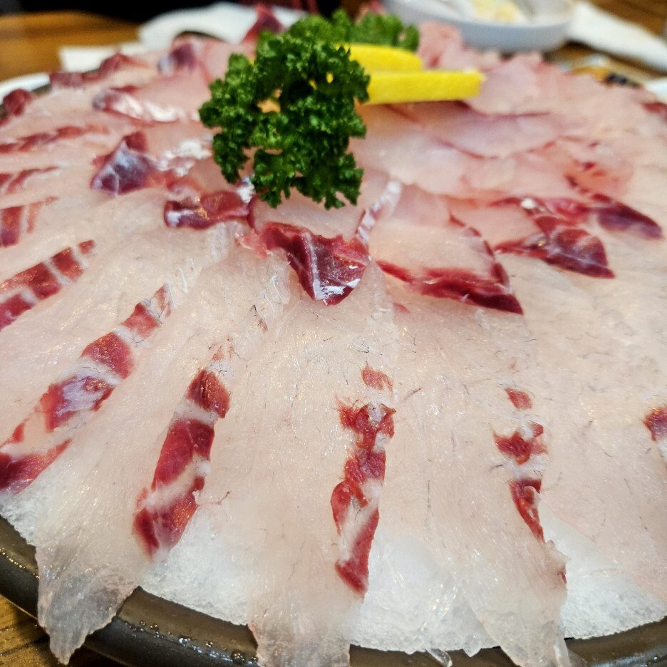 수조에 한가득 있던 줄돔과 한창 제철을 맞은 대방어. 많은 회를 먹어보았지만, 비싼 줄돔은 한 번도 먹어보지 못하고 처음 먹는다. 가격이 상당하여 이런 가족 모임 때에 나 먹을 수 있게 되었다. 처음 먹다 보니, 잘 몰라 그렇겠지만 감성돔과 줄돔의 외관상의 차이를 구분하지 못하겠다.