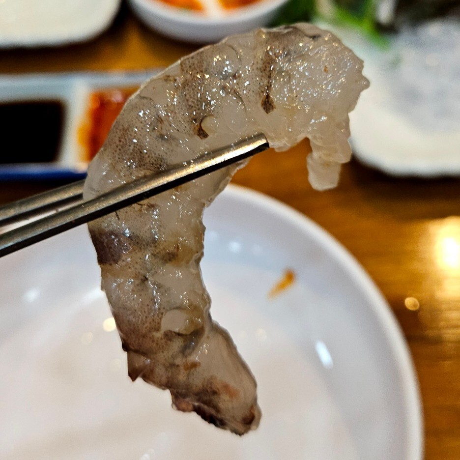 완도 도화새우도 나왔다. 그것도 살아있는 싱싱한 녀석들로. 회로 먹기 위해 껍질을 까는데 난리도 아니었다.