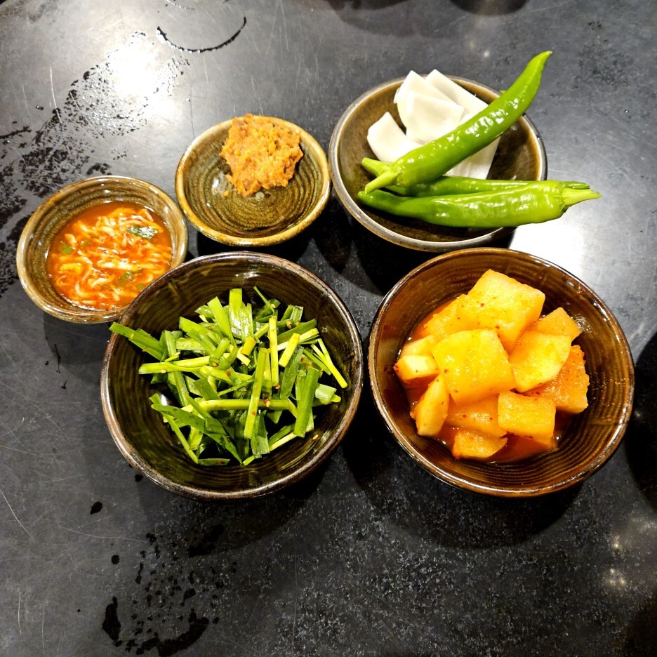 개인 취향으로 넣어 먹는 양파. 달달한 맛이 국물에 입혀져서 아주 선호하는 방법이다. 물론 부추무침도 빠지진 않는다.