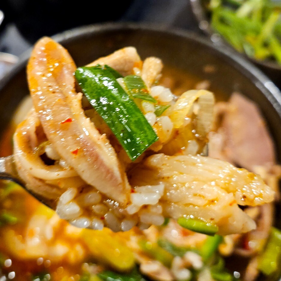 순댓국에는 돼지 머릿고기를 많이 사용하는 것으로 알고 있다. 당연히 잡내는 하나도 없는 훌륭한 품질의 고기들이 국밥 안에 한껏 들어가 있다.