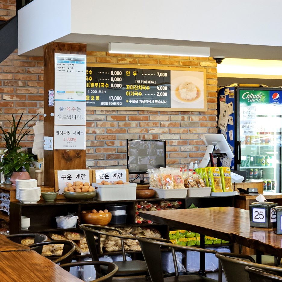 메뉴는 상당히 단출한 편. 비빔국수, 잔치국수, 동치미국수, 만두와 어린이 메뉴로 구성되어 있다.