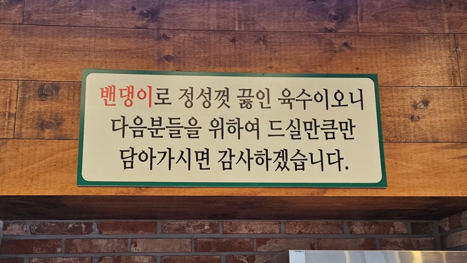첫 번째는 무제한으로 제공이 되는 육수를 한잔 따라놓는 것.