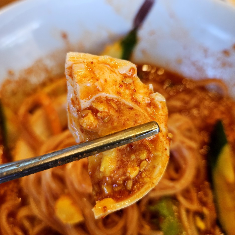 면만 먹어도 맛있지만, 채소들과 함게 한입 가득하게 국수를 먹으면 아삭한 느낌의 채소와 면의 궁합이 아주 훌륭하다. 물론 양념이 맛있기 때문이겠다.