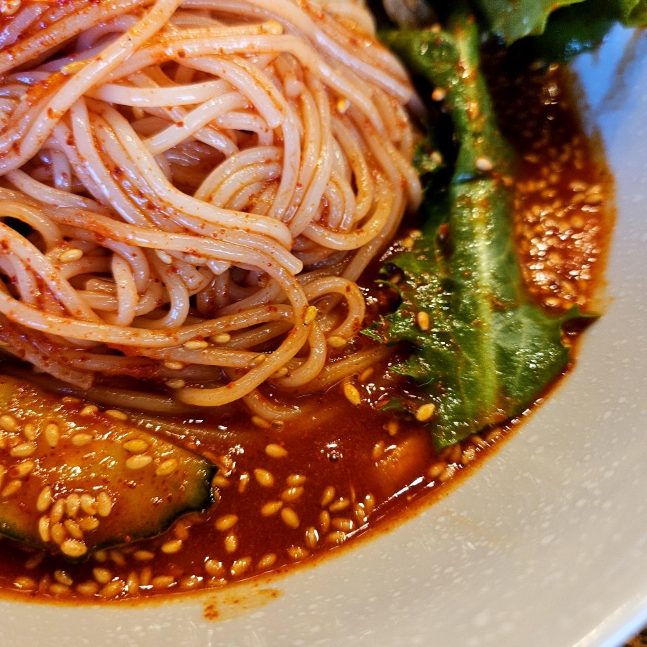 깔끔하게 맛있는 양념과 중면, 그리고 채소는 아주 맛있는 조합을 만들어 내어, 비빔국수에 별 관심 없었던 나를 사로잡은 가게가 되었다.