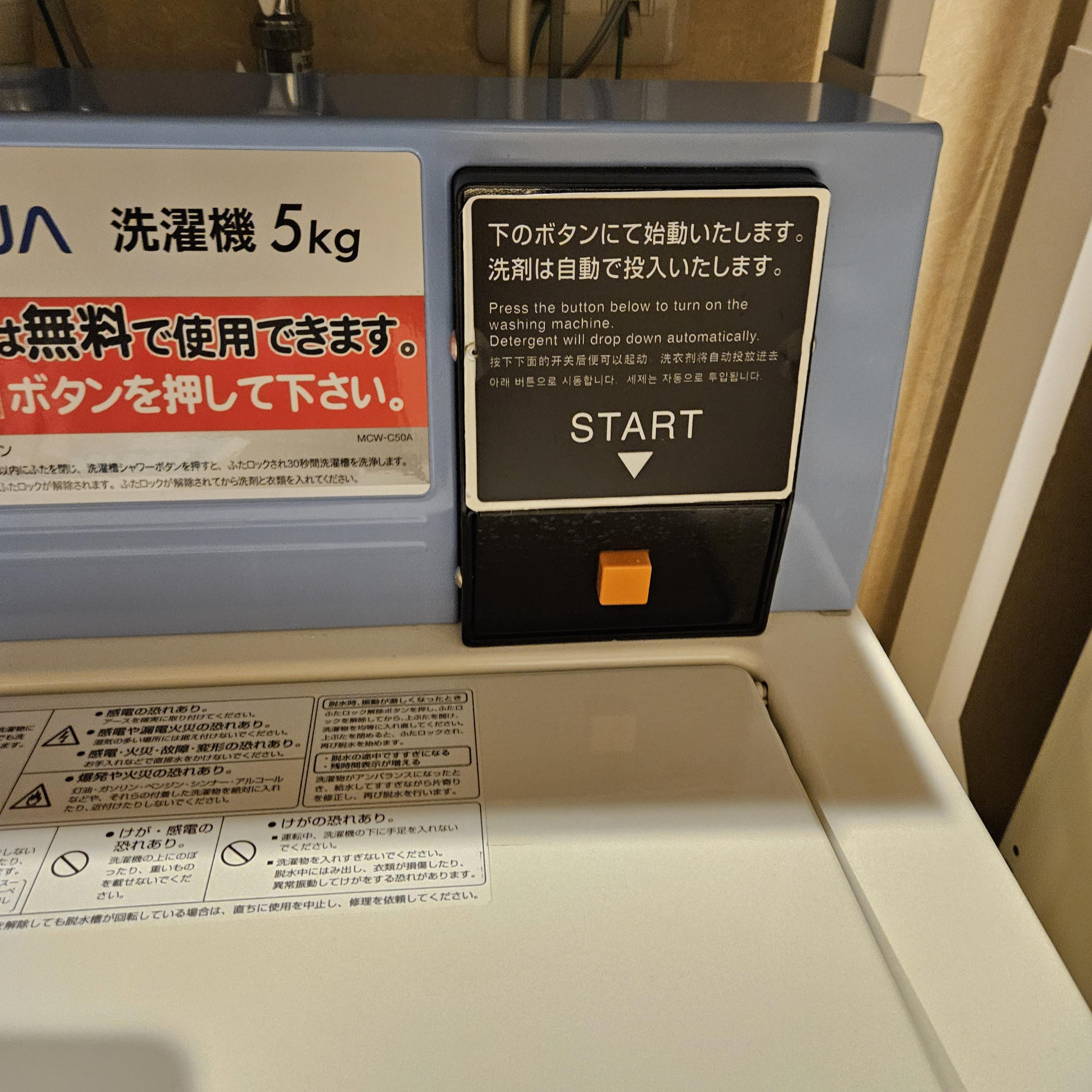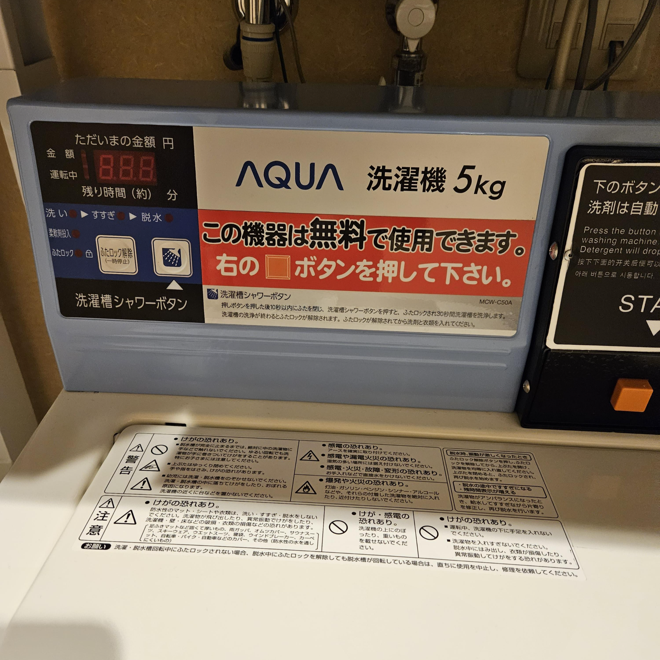 무료 세탁기: 무료로 세탁을 할 수 있다. 단, 건조기는 유료 100엔