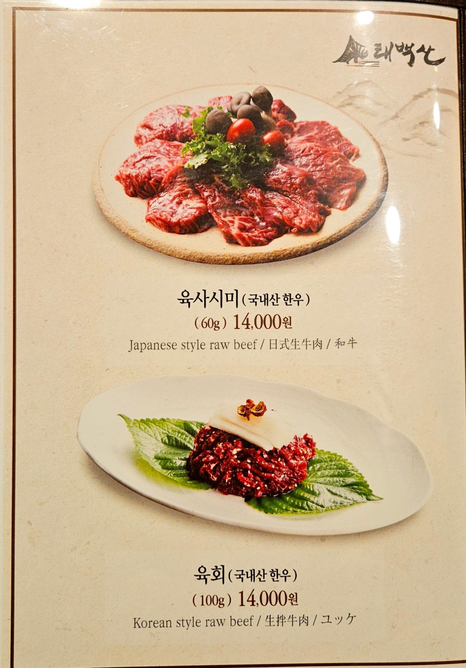 대망의 고기를 굽기 전, 서비스로 나온 육회를 맛보았다. 고기의 질은 상당히 좋았다. 살짝 아쉬운 것은 조금 달다는 느낌이 강한 양념.