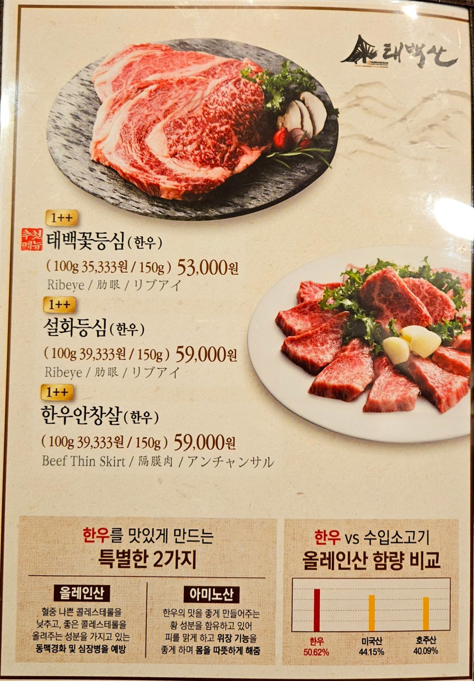 아주 훌륭한 고기를 먹을 수 있었기에 가격에 아주 만족한다.