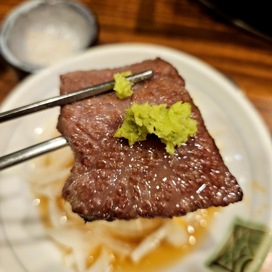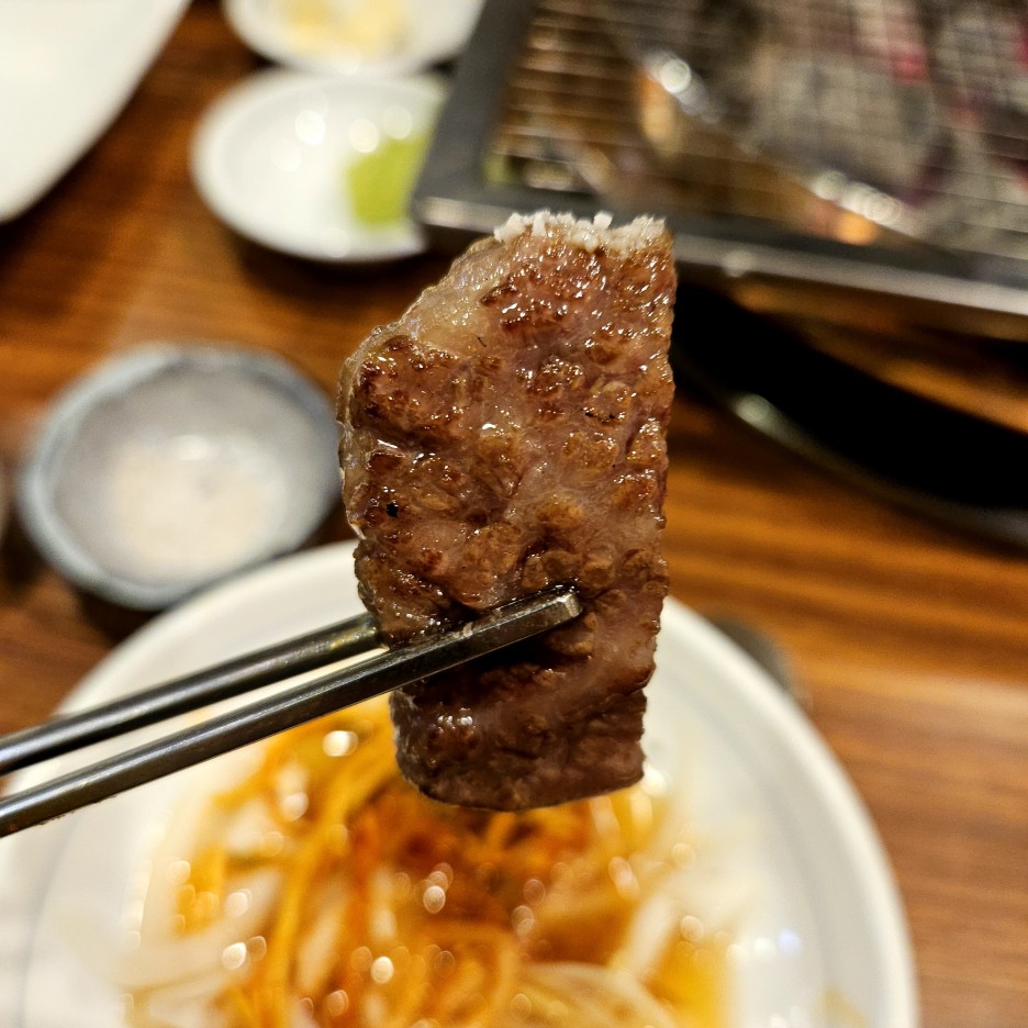 늑간살쪽은 아무래도 마블링이 덜하다 보니, 쫄깃하여 씹히는 맛이 훌륭하다.