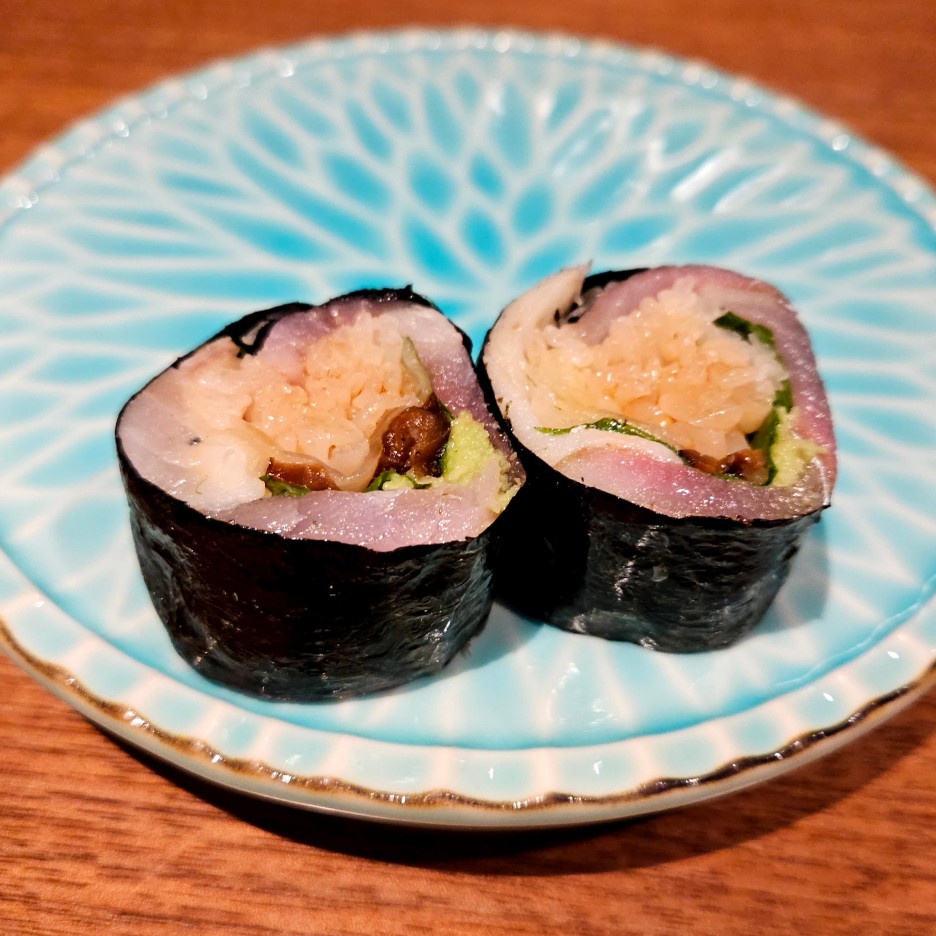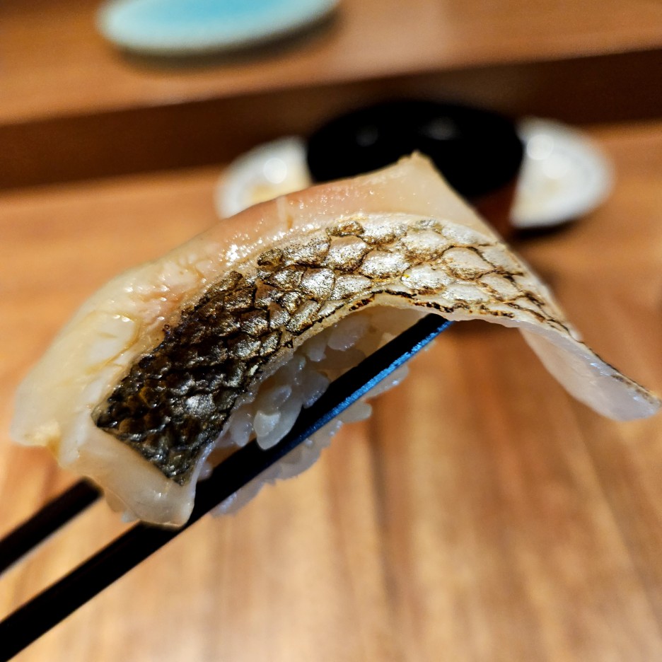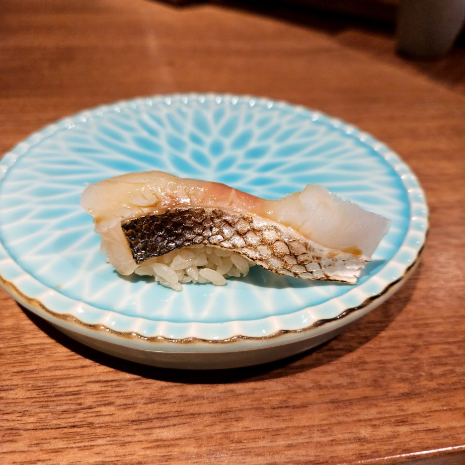 아리가의 시그니처 훈연 스시 중 하나. 처음 맛본 일행들은 너무 맛있다는 소감을...