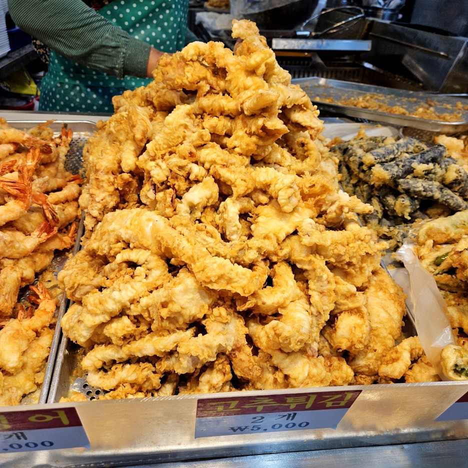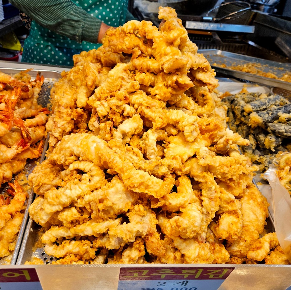 속초에 자주 여행을 가는데, 대포항이나 속초 중앙 시장에서 자주 튀김을 사 먹었었다.