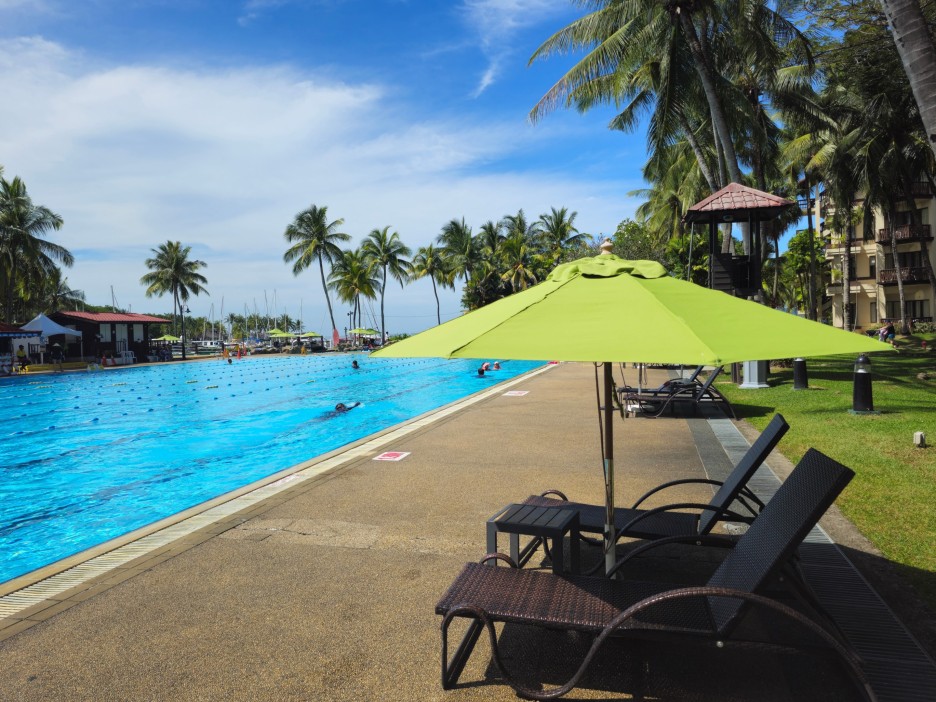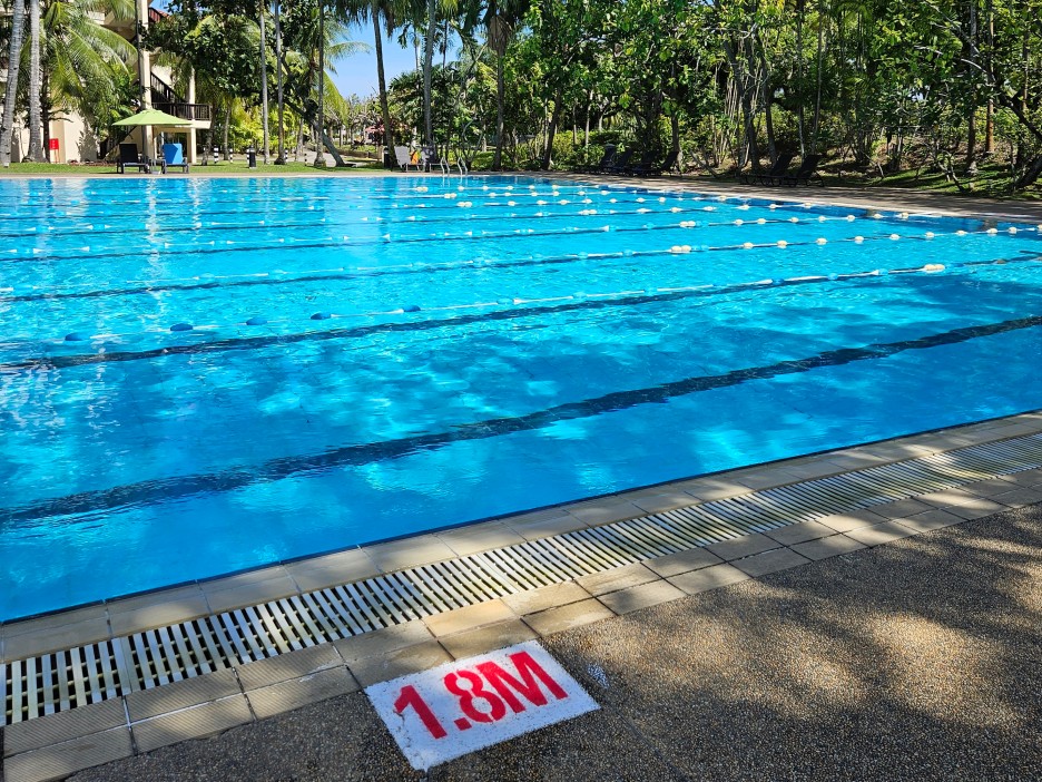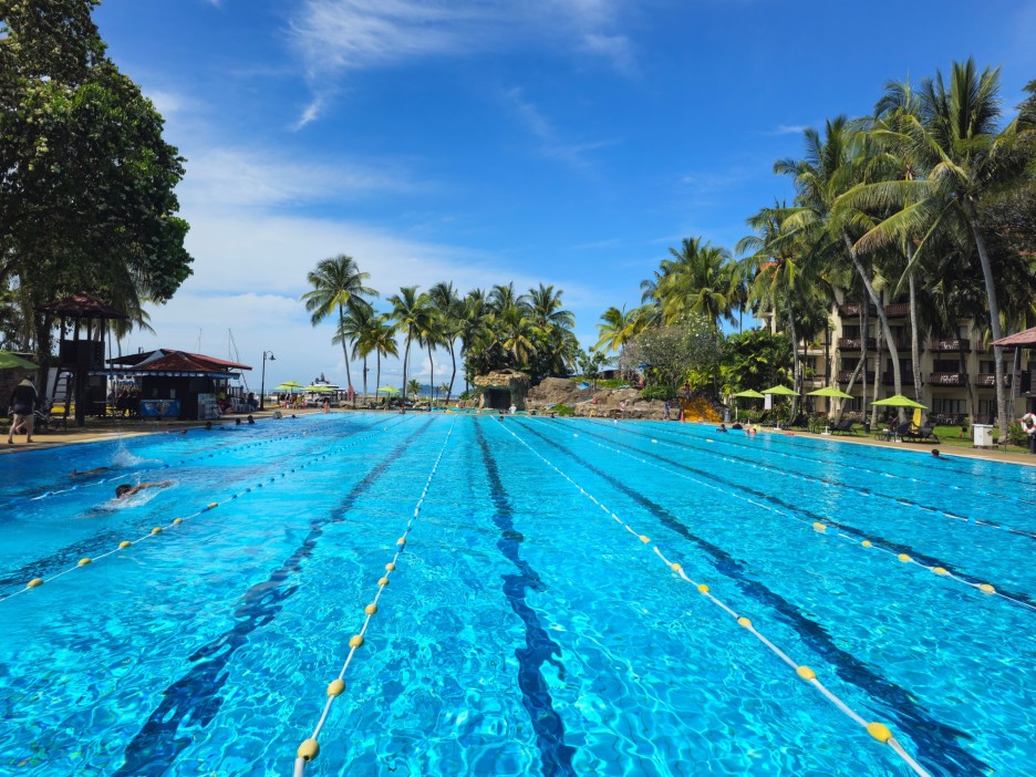 이중 가장 임팩트가 있는 곳은 국제 규격인 50m 길이에 8개의 레인을 가지고 있는 그야말로 대규모 수영장이다. 한국에서는 서울 잠실 실내 수영장이나 가야 50m 길이의 수영장을 볼 수 있는데, 동남아시의 리조트에서 보다니 신기했다.