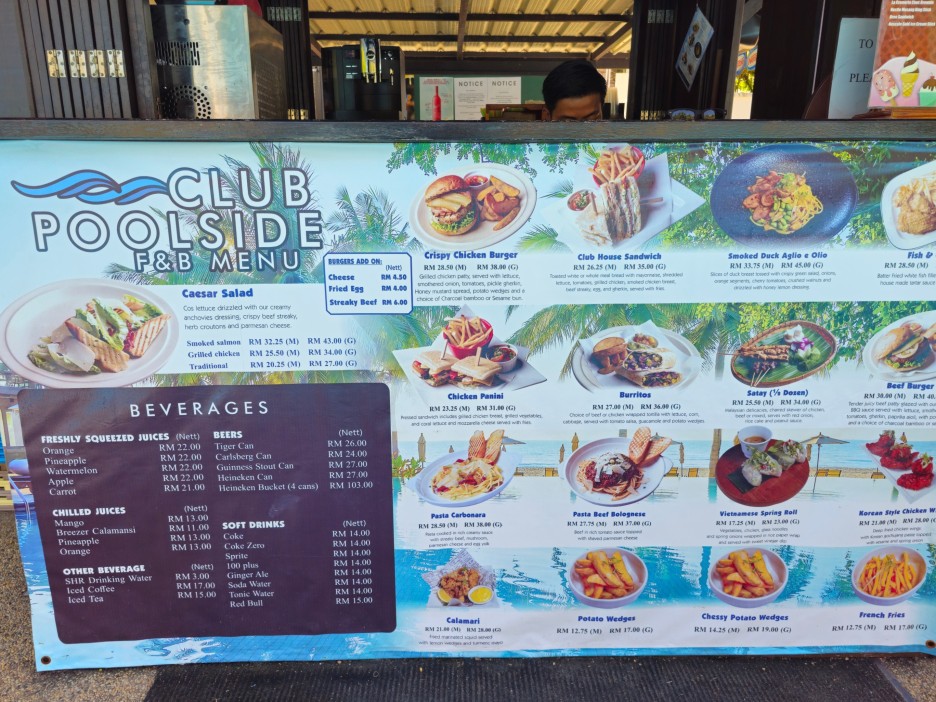 한쪽에는 풀 사이드바도 있다. 다양한 음식의 주문이 가능하고, 맥주와 칵테일, 소프트드링크 들을 주문할 수 있다. 아이스크림도 있으니 더울 때 먹어주면 좋을 듯하다.