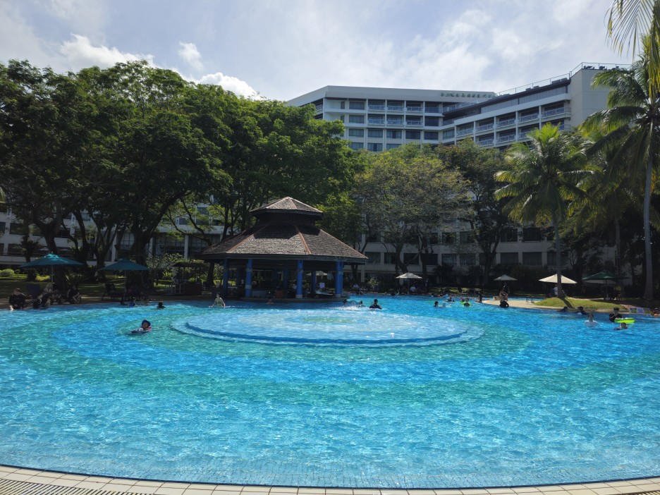 퍼시픽 수트라의 수영장은 크지 않은 모습이었고, 사람들이 꽤 많은 모습이다. 지금 사진으로 보는 것이 퍼시픽 수트라 호텔 수영장의 전부이다.